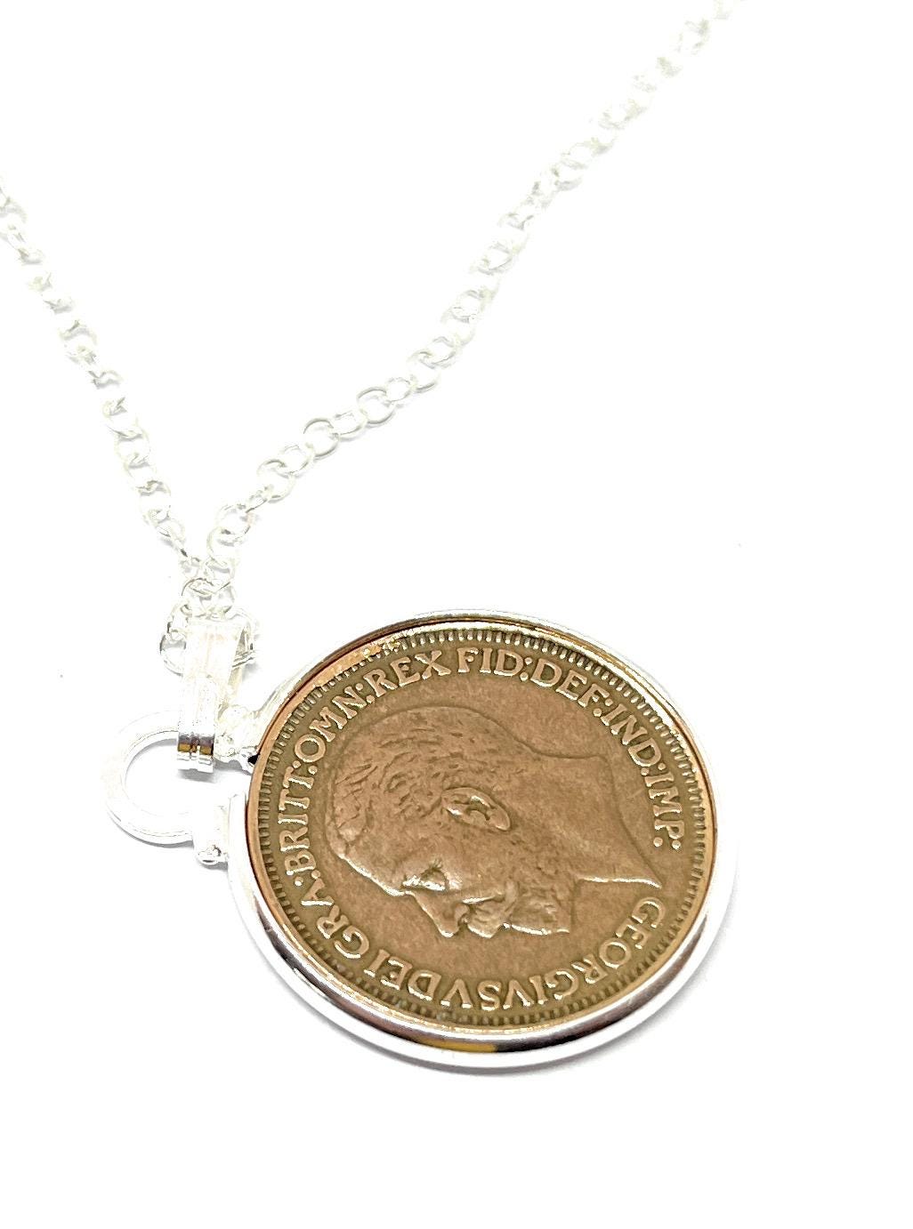 1923 102nd Birthday Anniversary Farthing coin in a Silver Plated Pendant mount