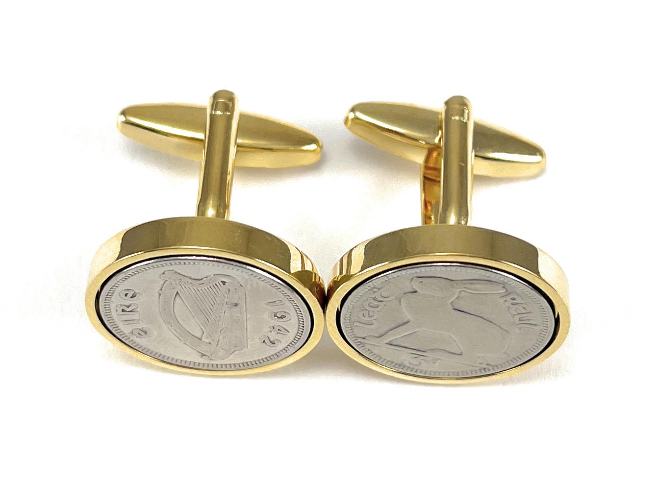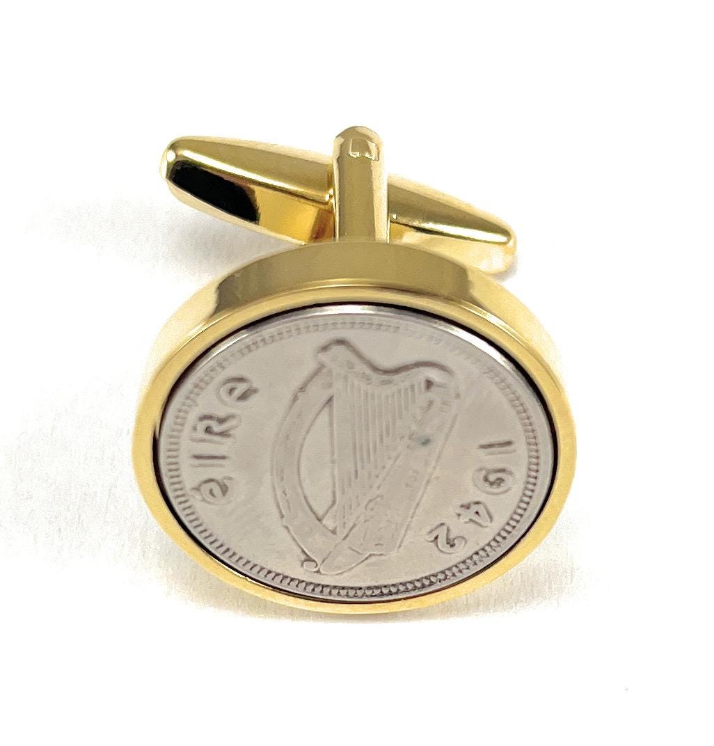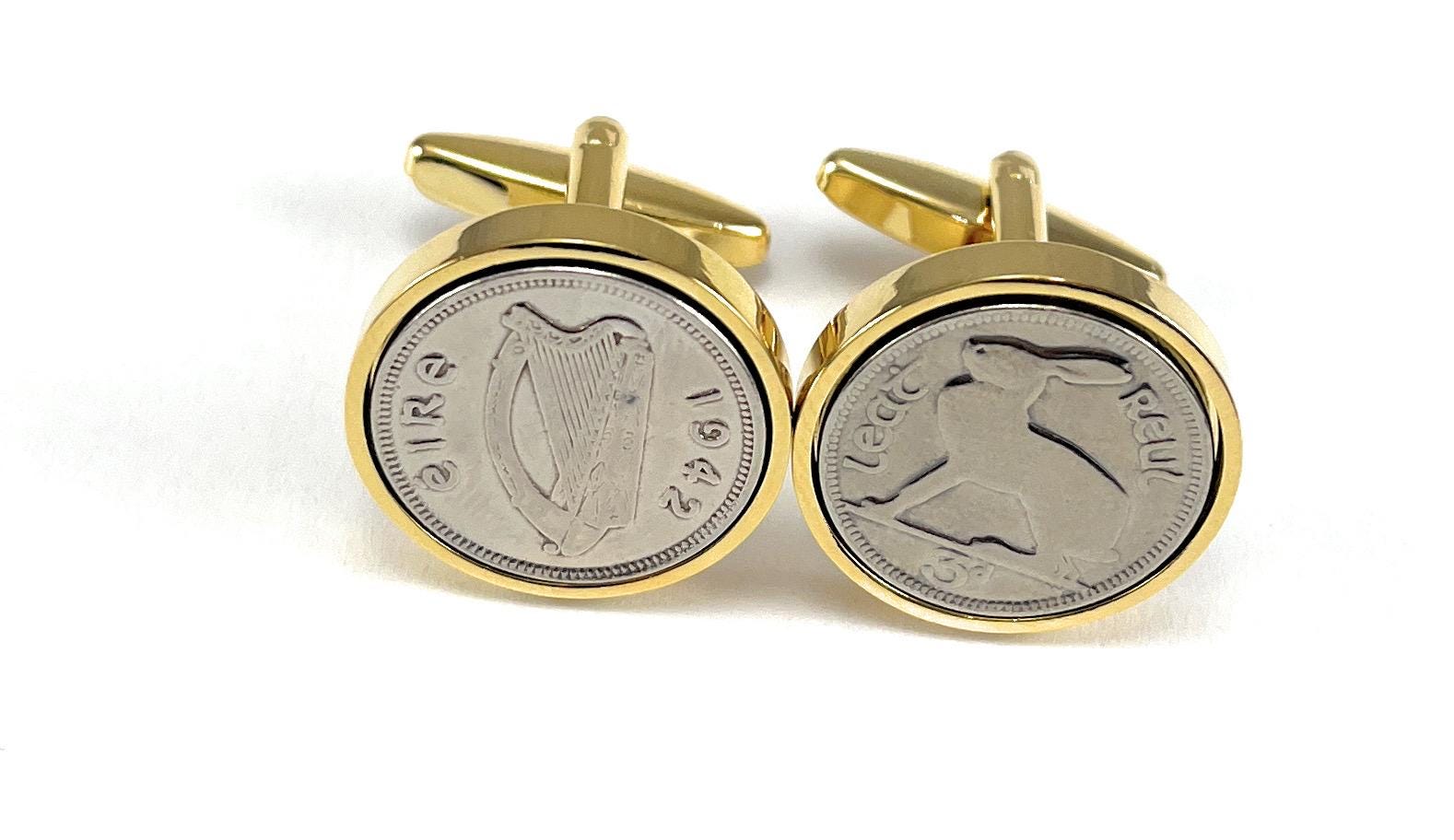 1942 Irish Threepence Coin Cufflinks 83rd birthday gift: Silver Plated backs