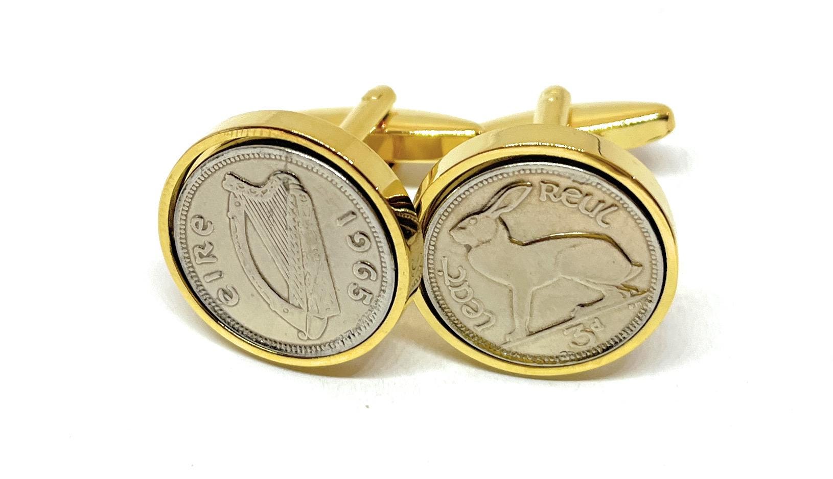 1965 Irish coin cufflinks 60th birthday gift: Silver or Gold plated backs