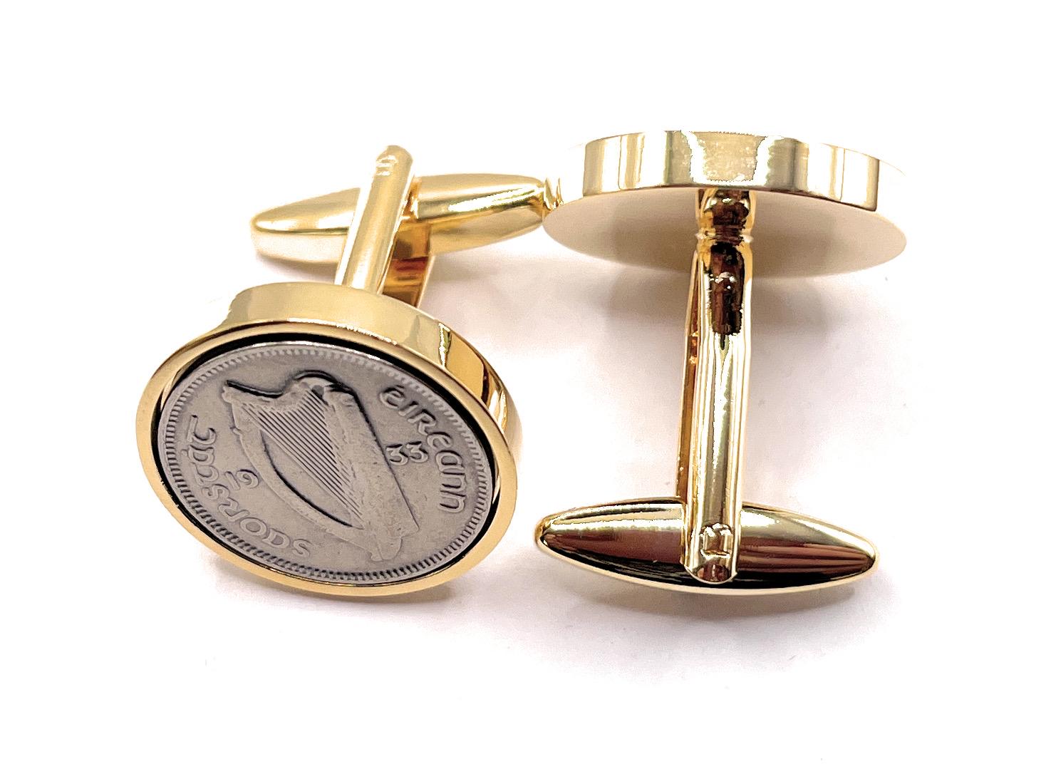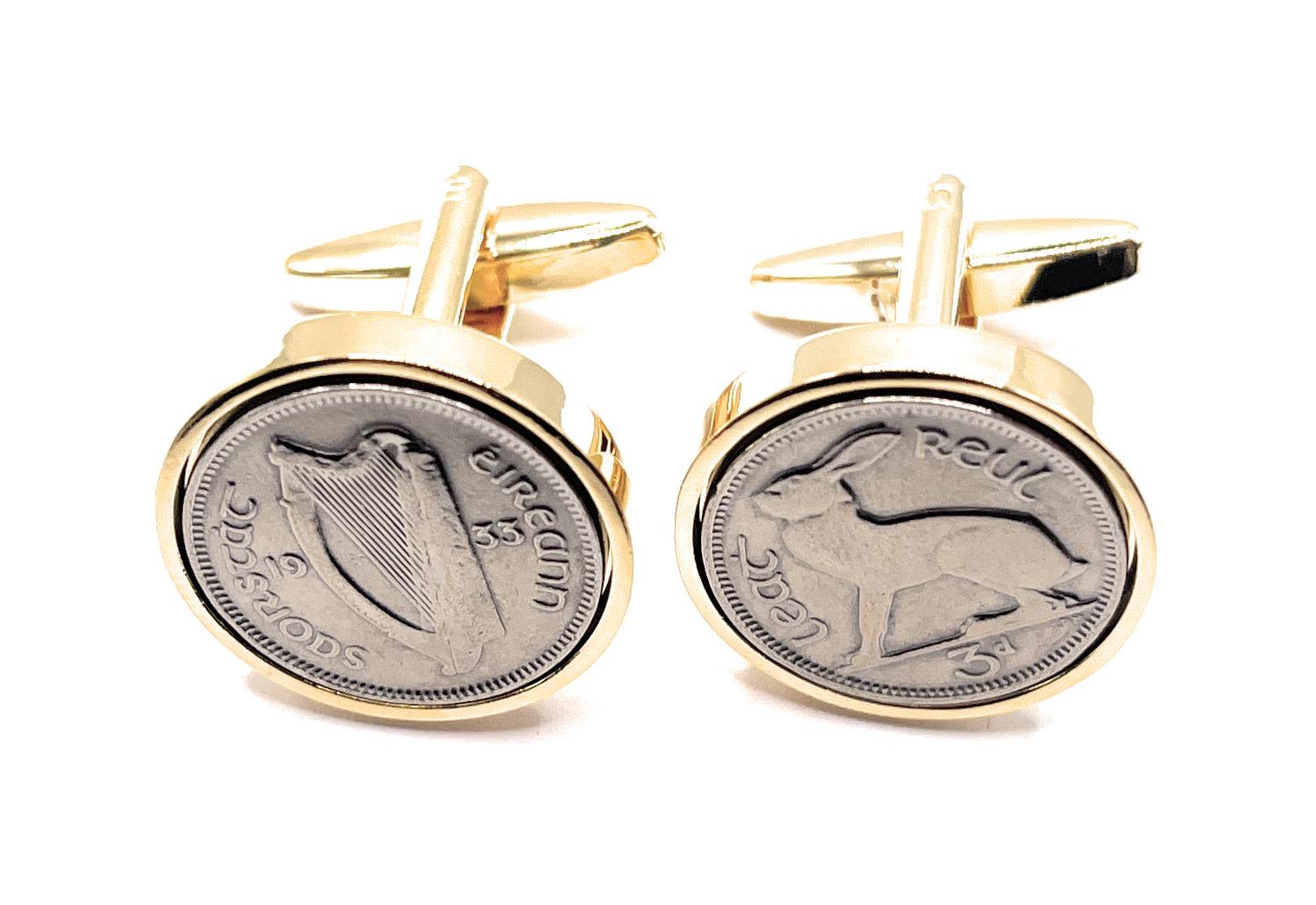 Genuine Irish 3d threepence coin cufflinks mounted in Silver plated cufflink backs.