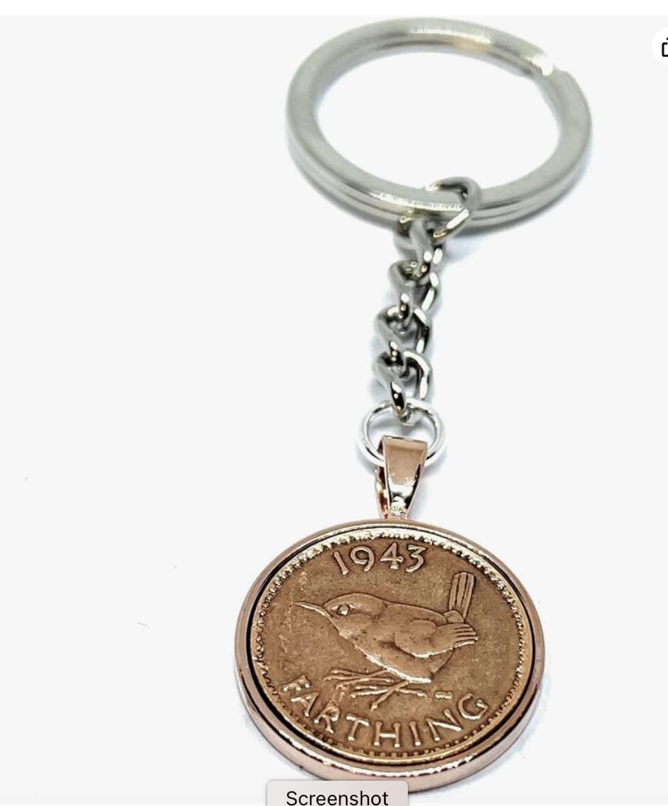 1943 Farthing Coin Keyring: 82nd Birthday Gift, Silver, Gold or RoseGold plated backs