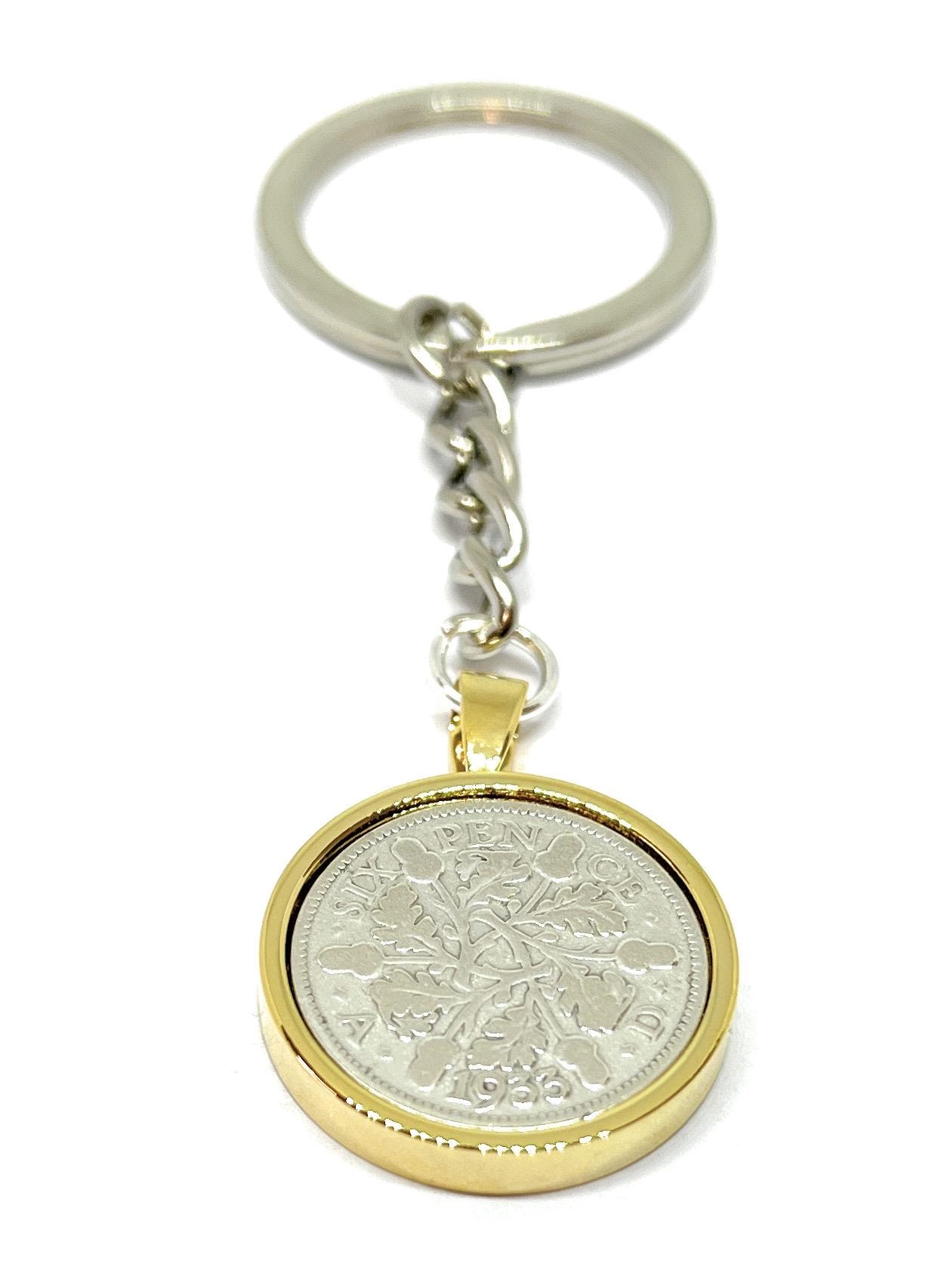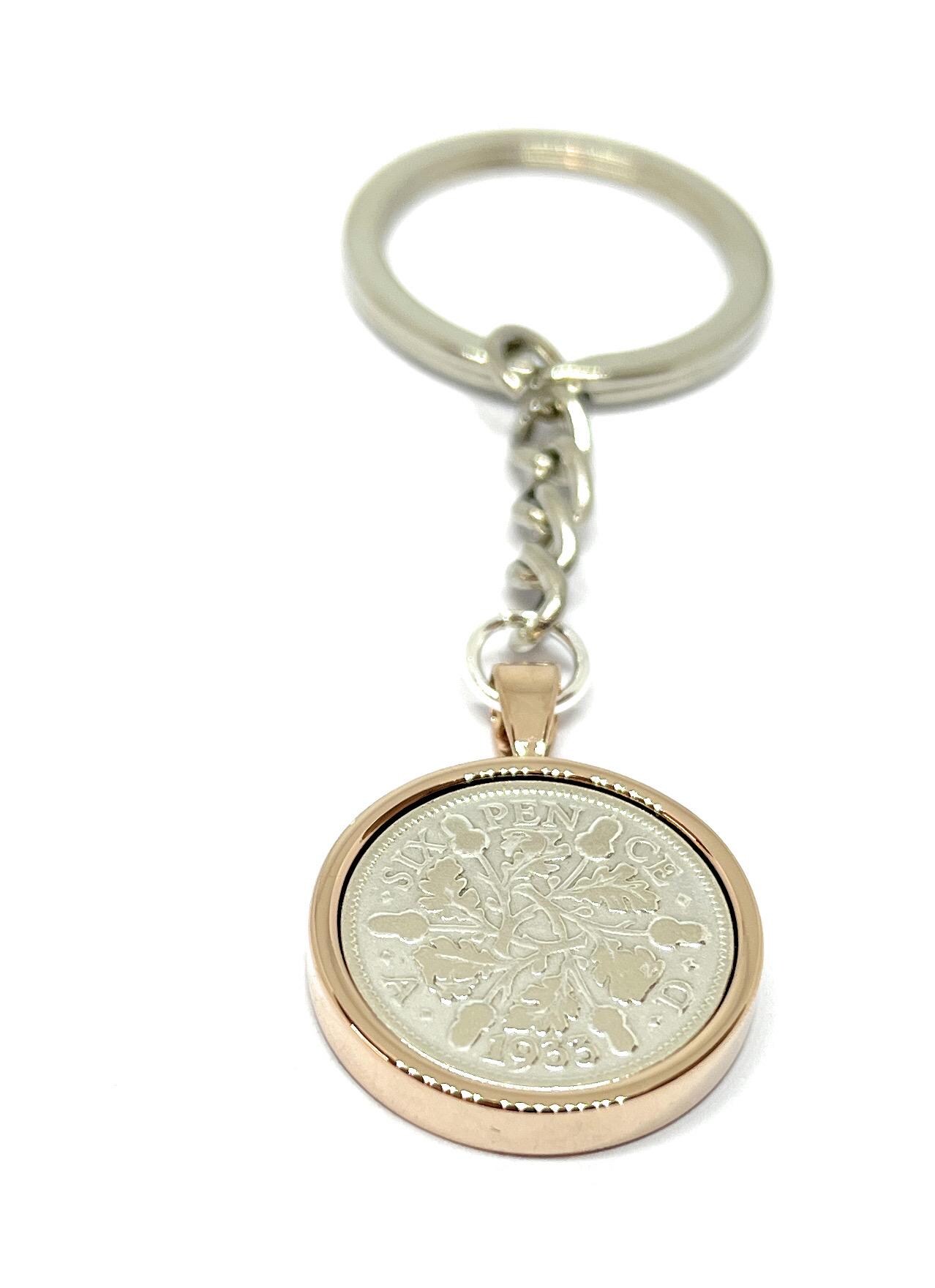 These keyrings have been lovingly handmade from vintage 1933 Sixpence Coins which have been polished. Perfect for a birthday or Anniversary gift.