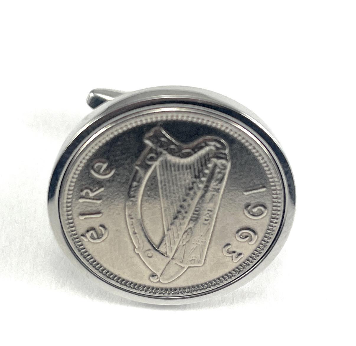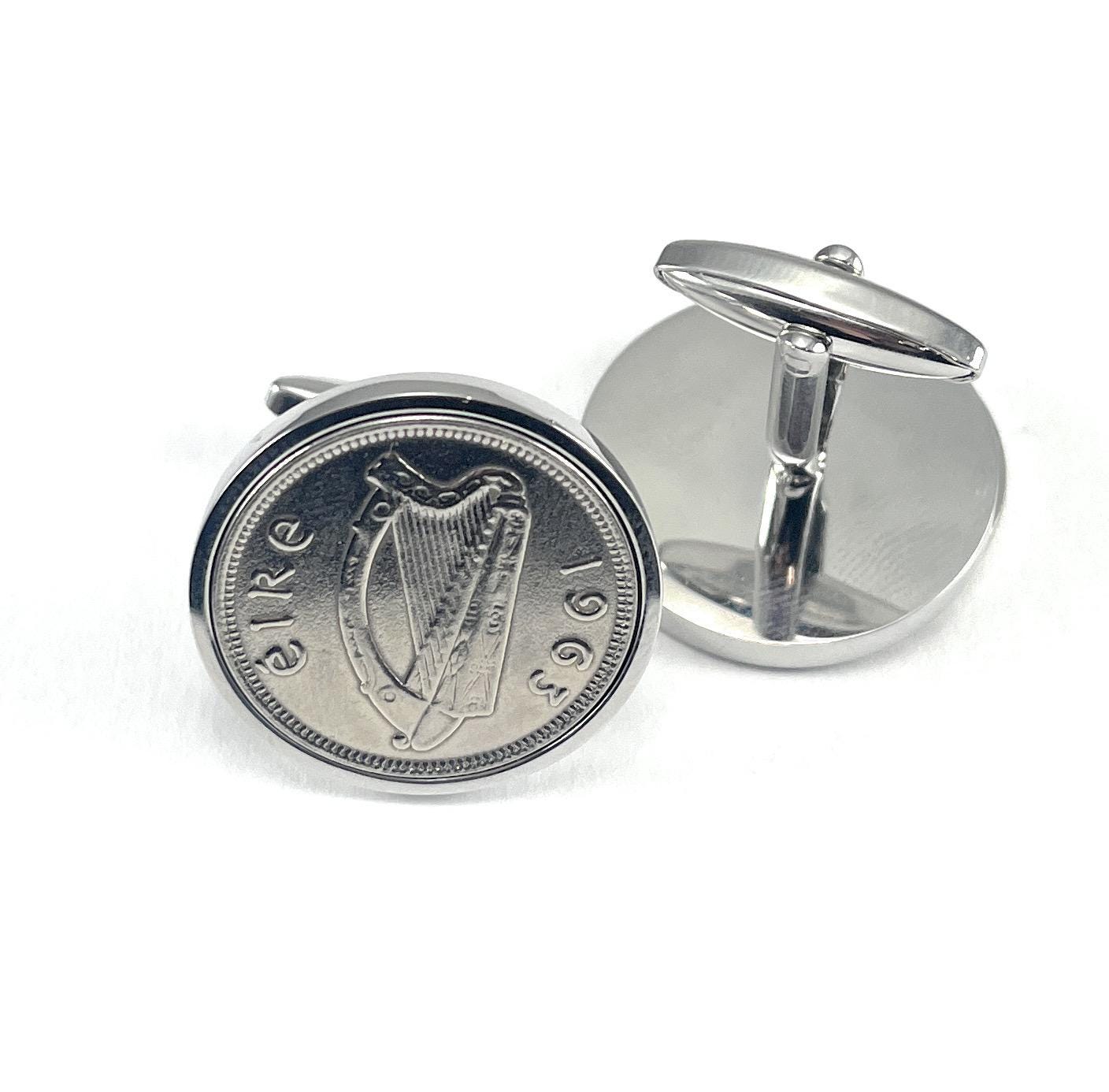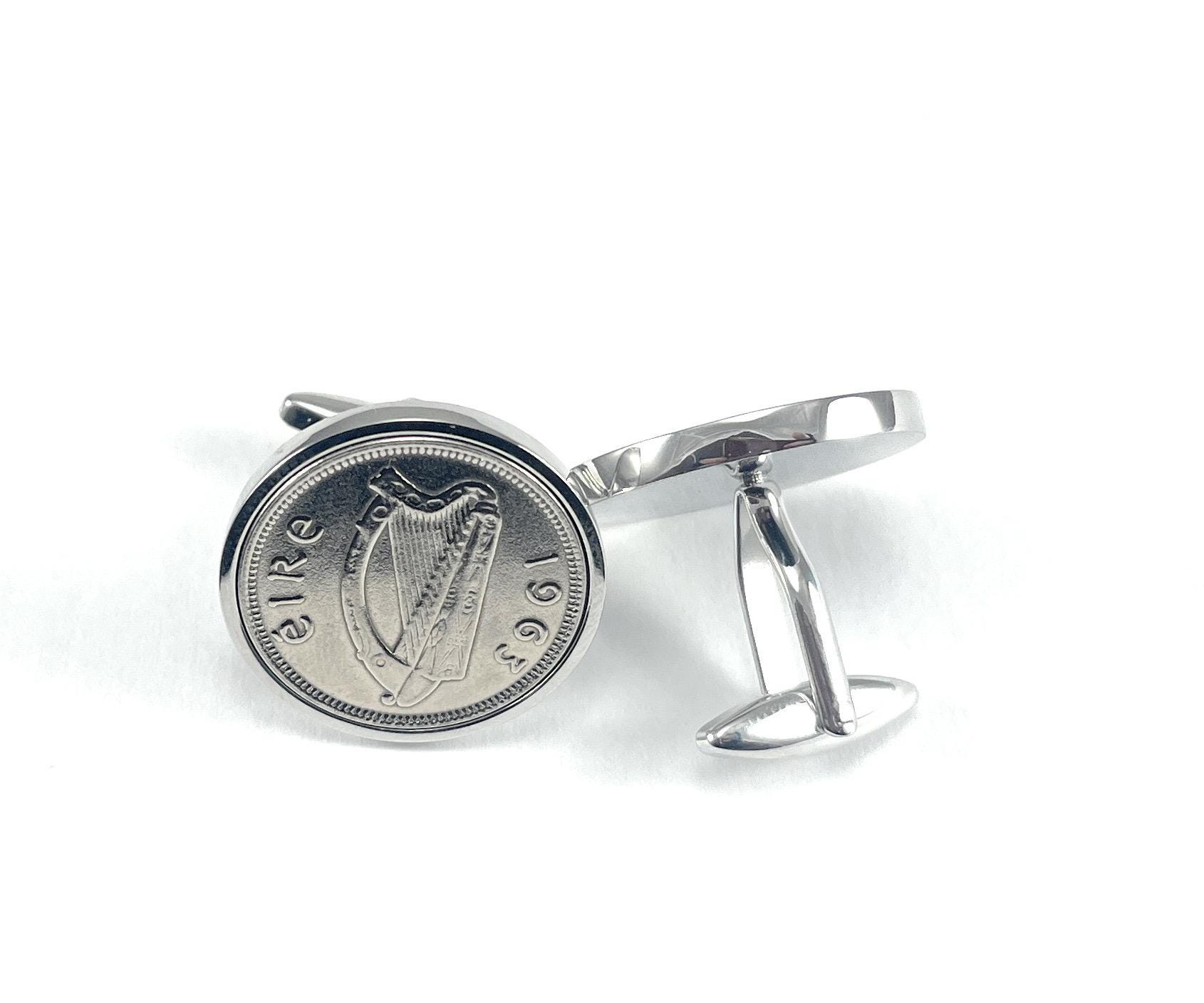 1963 Irish Shilling coin cufflinks 62nd birthday gift 23mm: Silver Plated backs