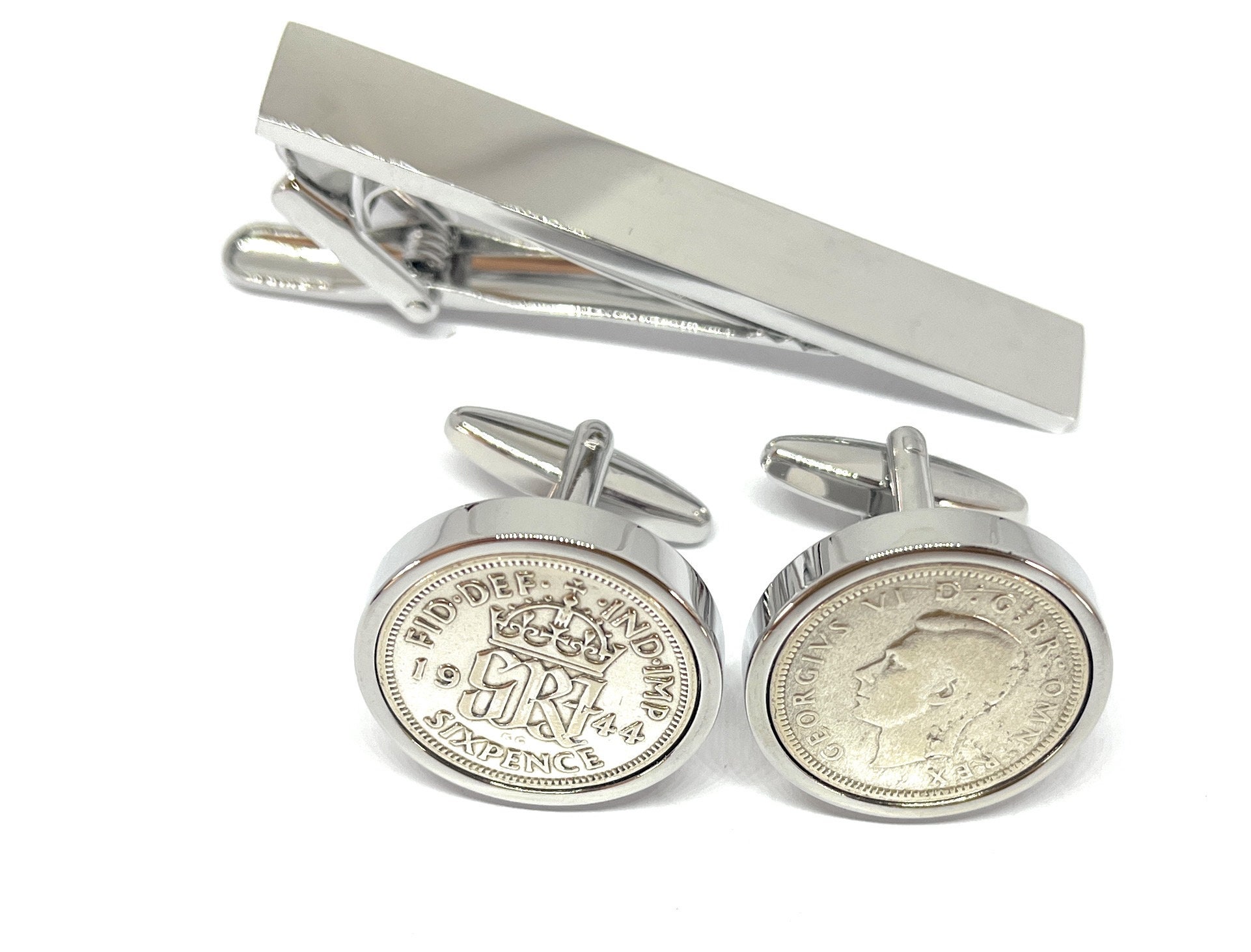 1944 82nd Birthday Gift Sixpence Coin Cufflinks: Silver Plated Mounts