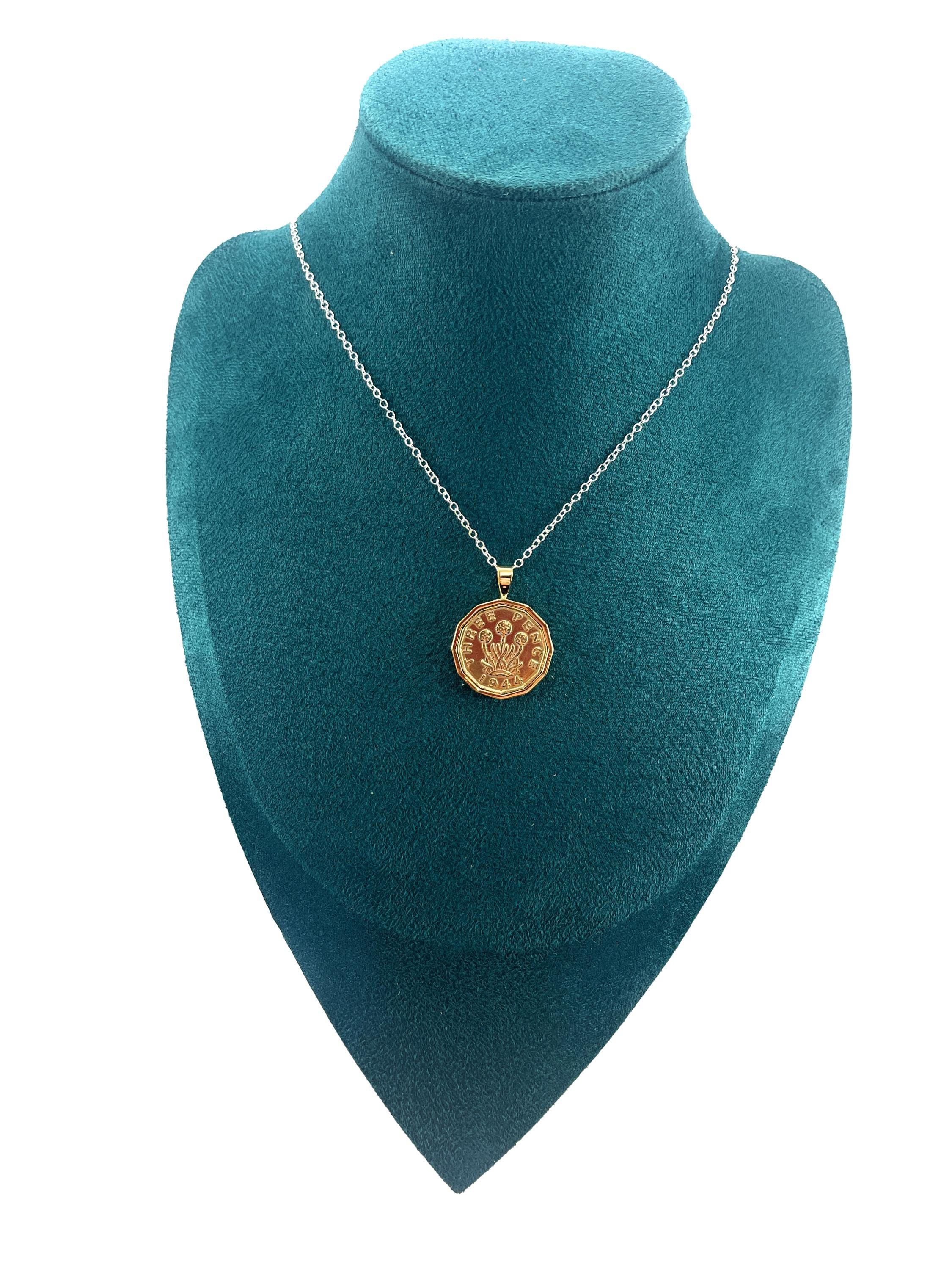1944 Threepence Coin Pendant: 81st Birthday Gift, Sterling Silver Chain
