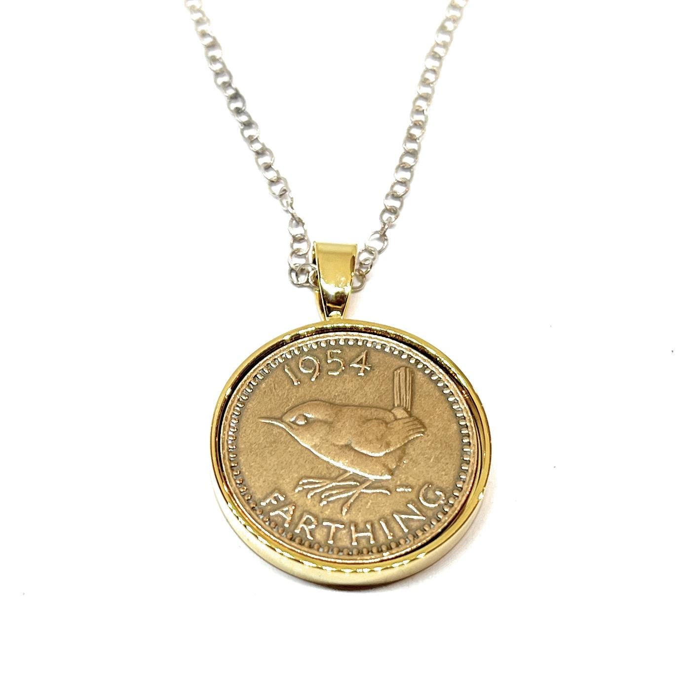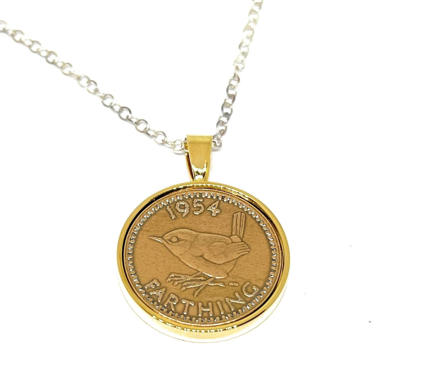 1954 71st Birthday Gift Farthing Coin Pendant: Silver, Gold or RoseGold plated mounts