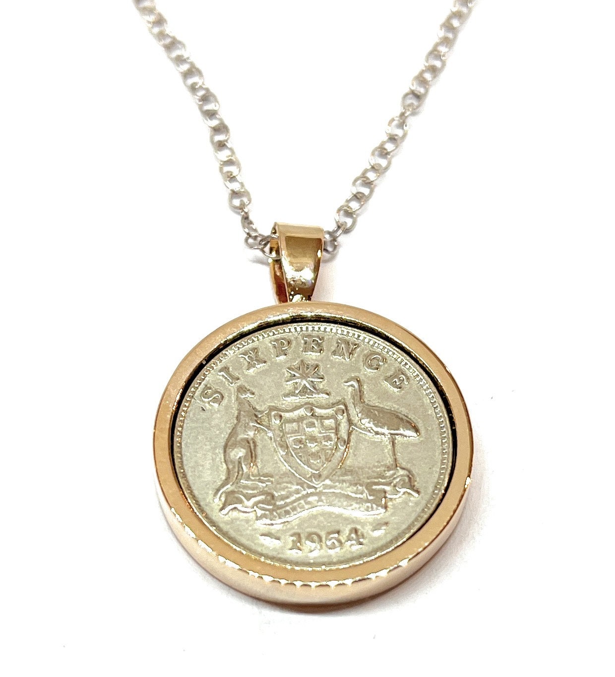 1954 Australian Sixpence Pendant: 71st Birthday Gift, Sterling Silver Chain