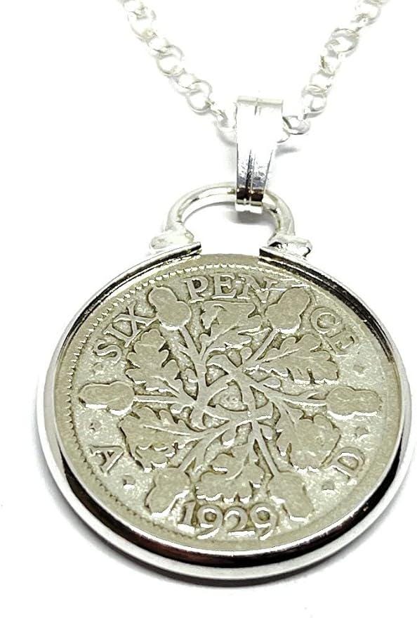 1929 Sixpence Coin Pendant: 96th Birthday Gift, Sterling Silver Chain