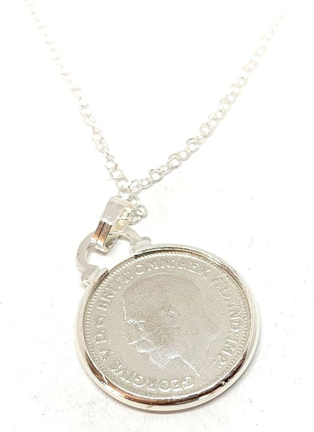 A genuine circulated 1931 hand polished sixpence attached to a silver plated pendant mount