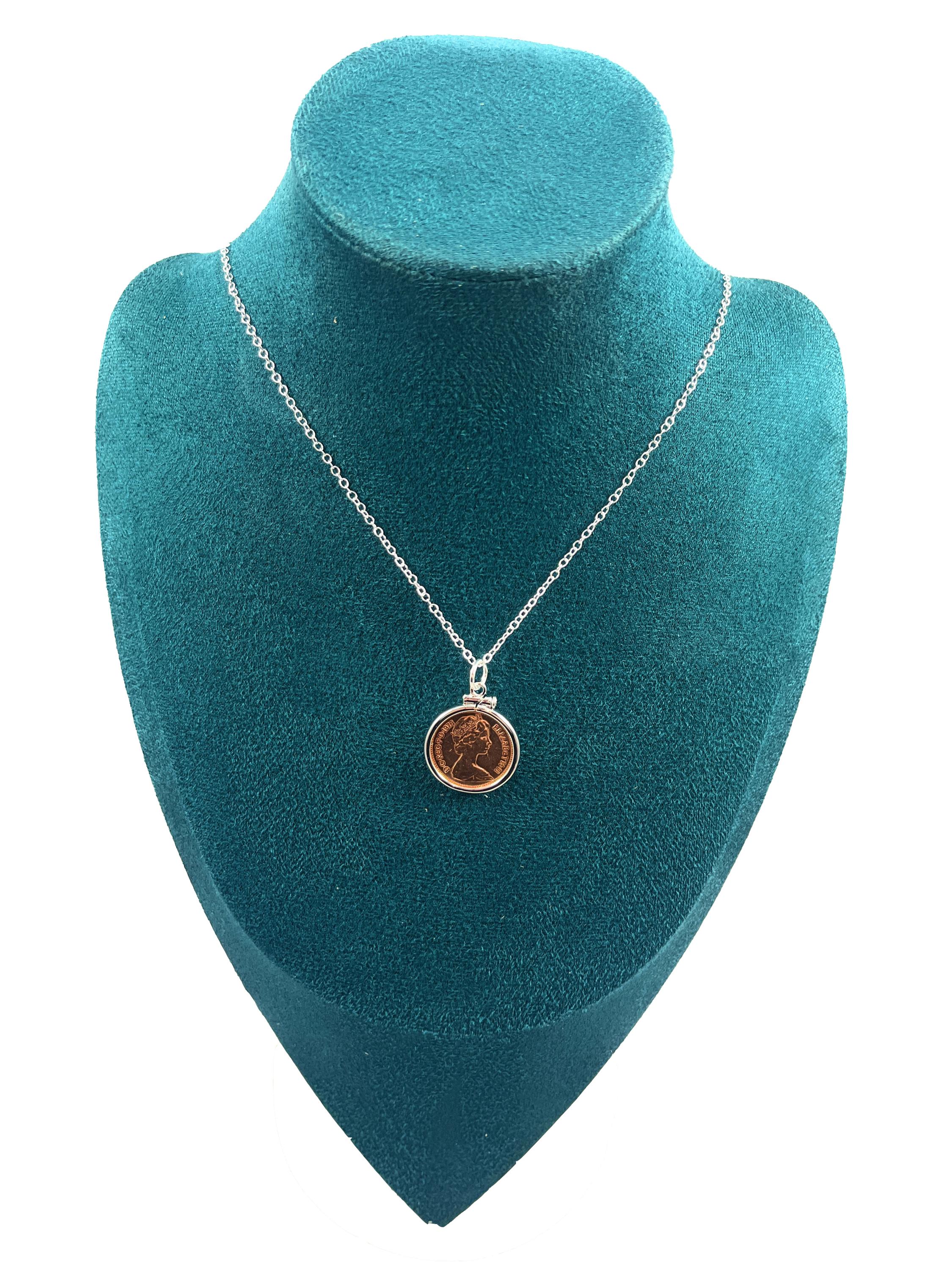 Genuine circulated 1951 74th birthday gift coin mounted in a Silver plated mount solid cinch mount with a Sterling Silver chain
