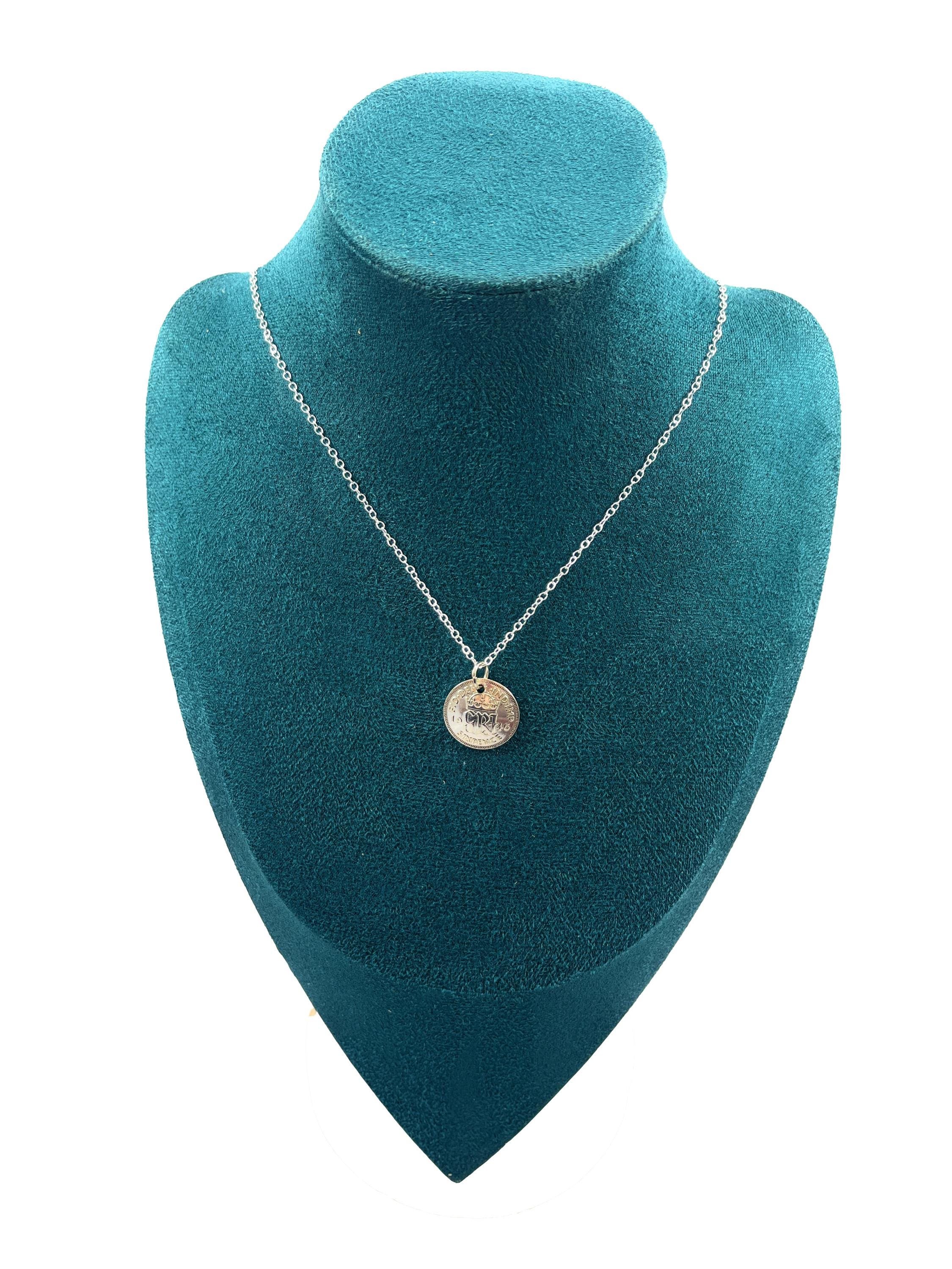 Genuine circulated 1950 75th birthday Domed sixpence coin with 18 inch Sterling Silver chain