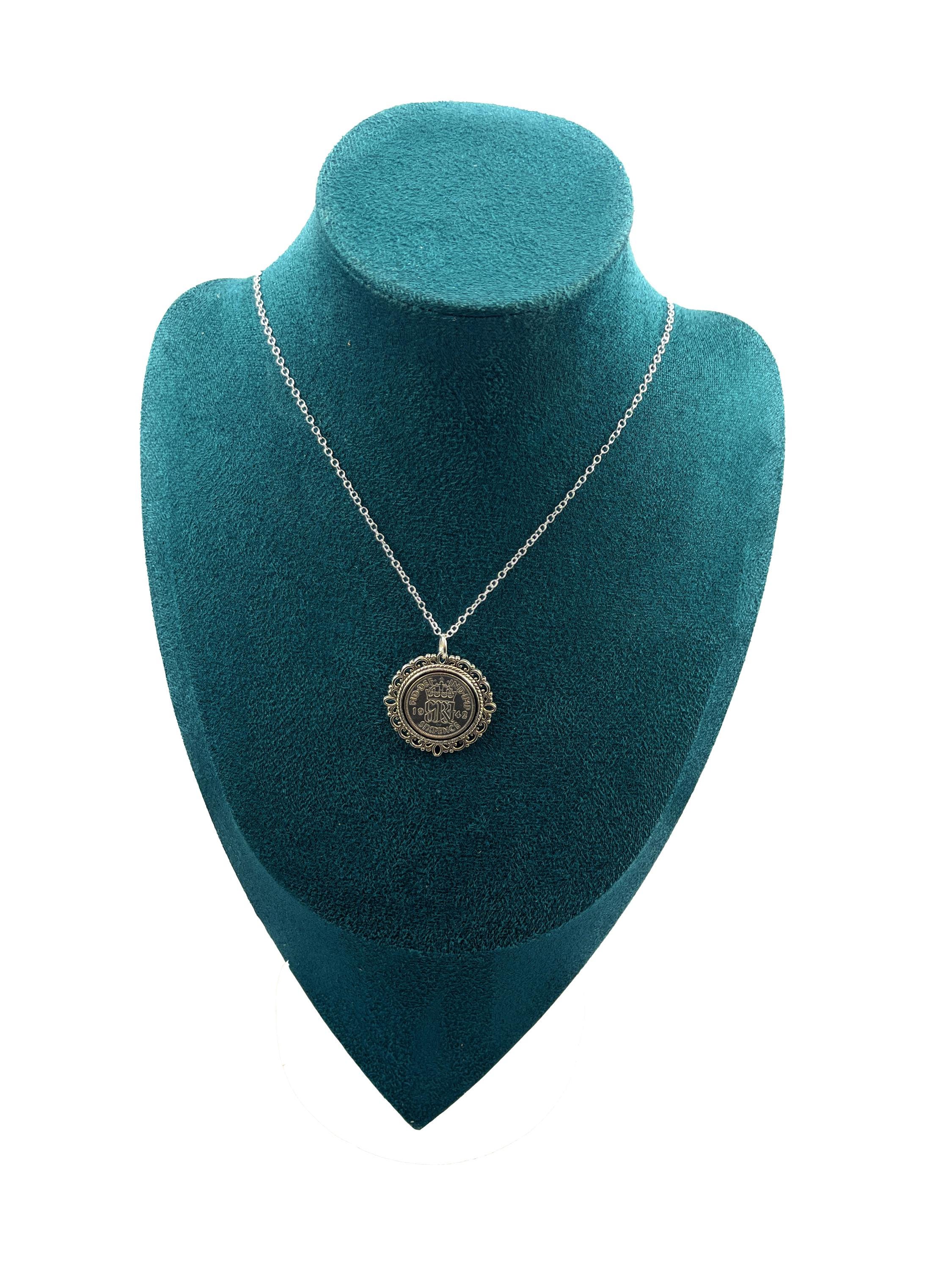 Genuine Circulated Sixpence Mounted on a Tibetan Silver mount with a 18 inch Sterling silver chain 1940 coin