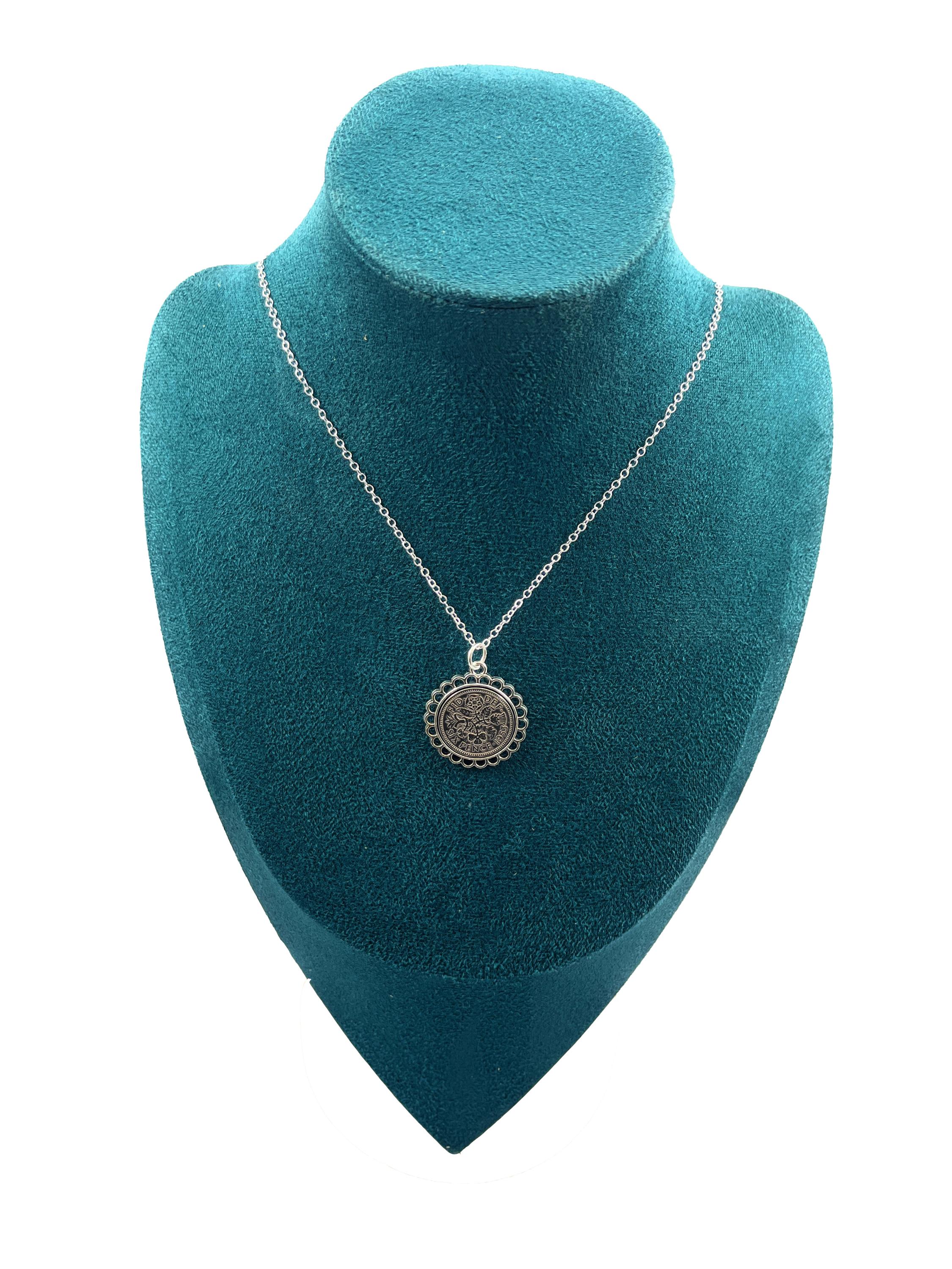 Genuine Circulated Sixpence Mounted on a Tibetan Silver mount with a 18 inch Sterling silver chain 1960 coin
