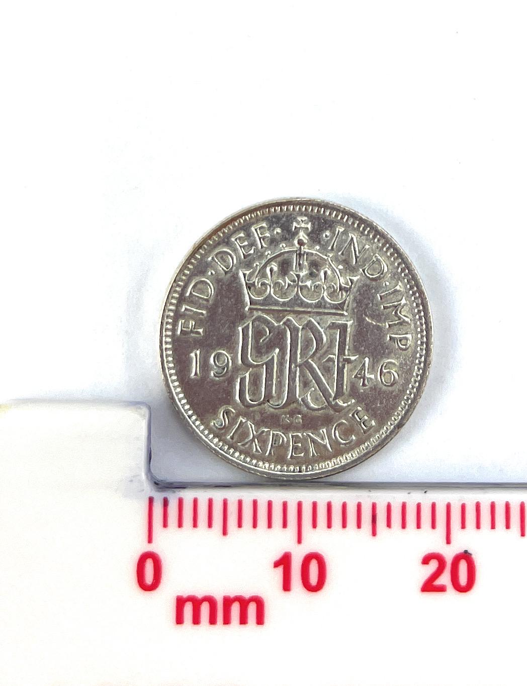 Genuine Circulated Sixpence Mounted on a Silver, Gold or Rose Gold Plated mount with a Sterling silver chain and cleaned and polished 1946 Sixpence coin