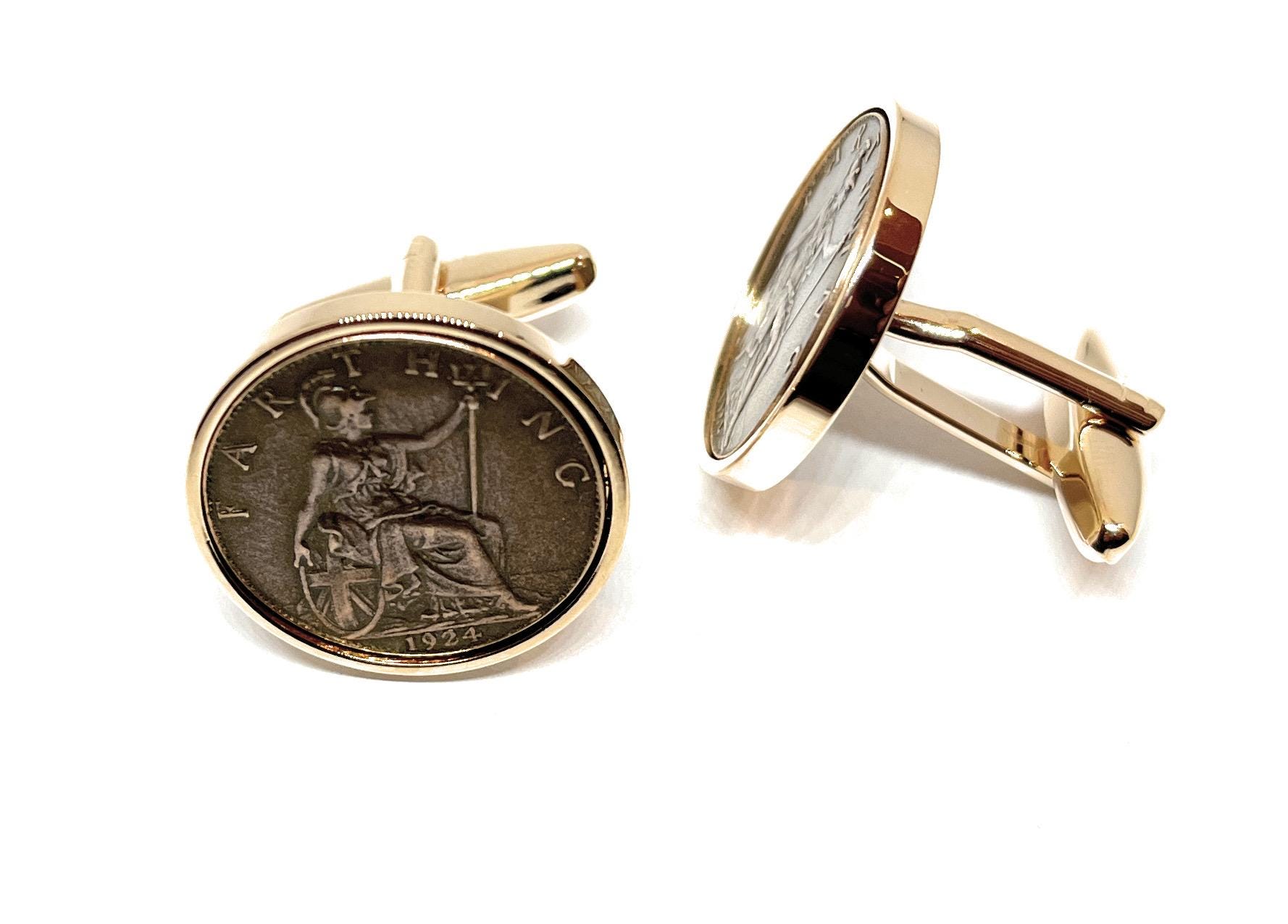 101st Birthday gift 1924 Farthing Coin Cufflinks: Rose Gold plated backs