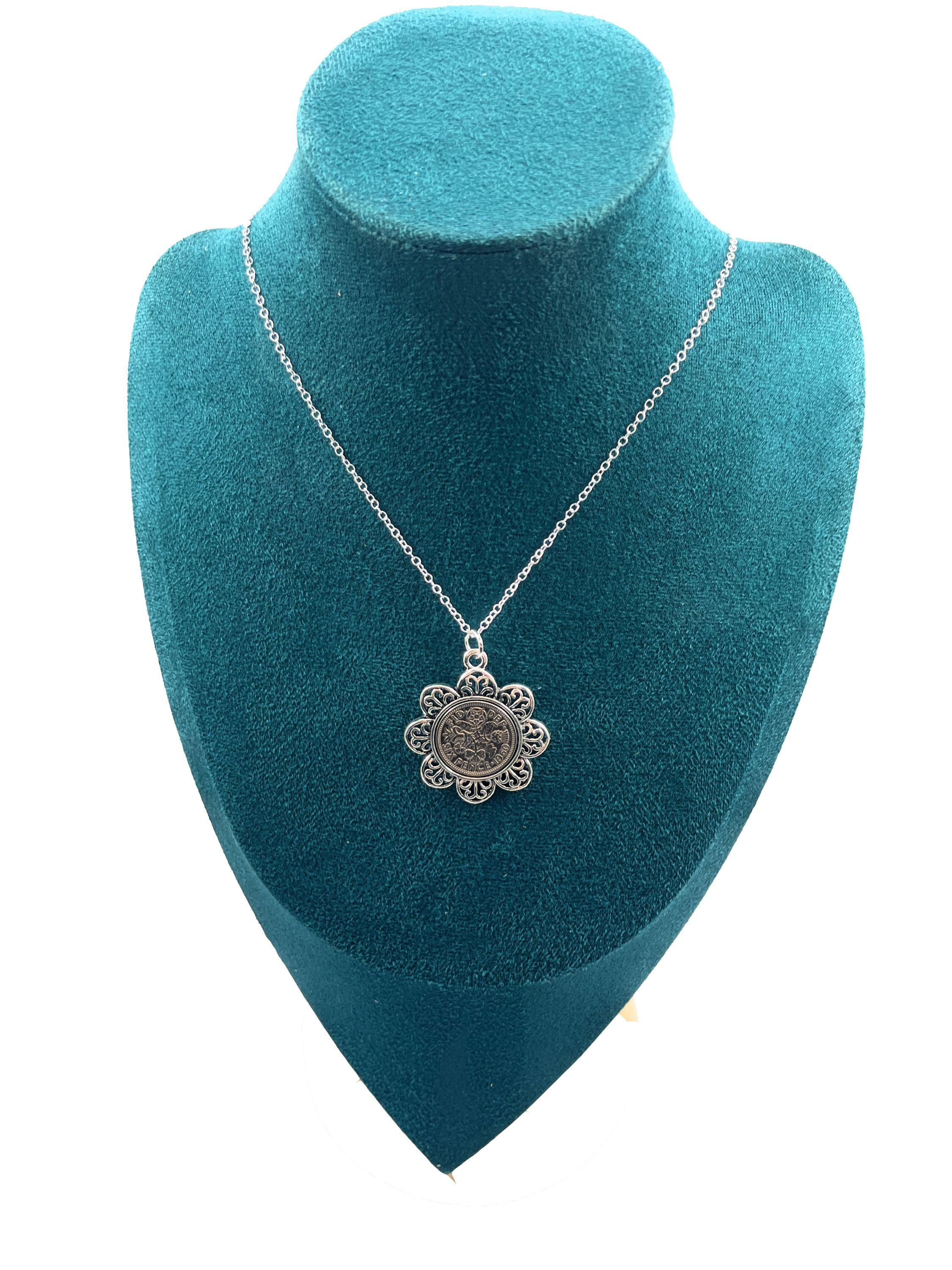 1946 Sixpence Floral Coin Pendant: 79th Birthday Gift, Sterling Silver Chain