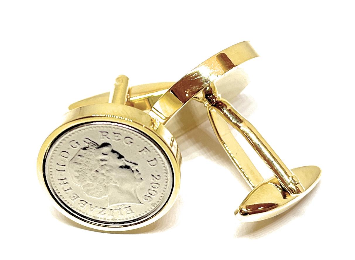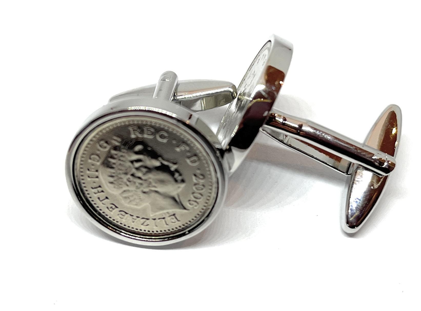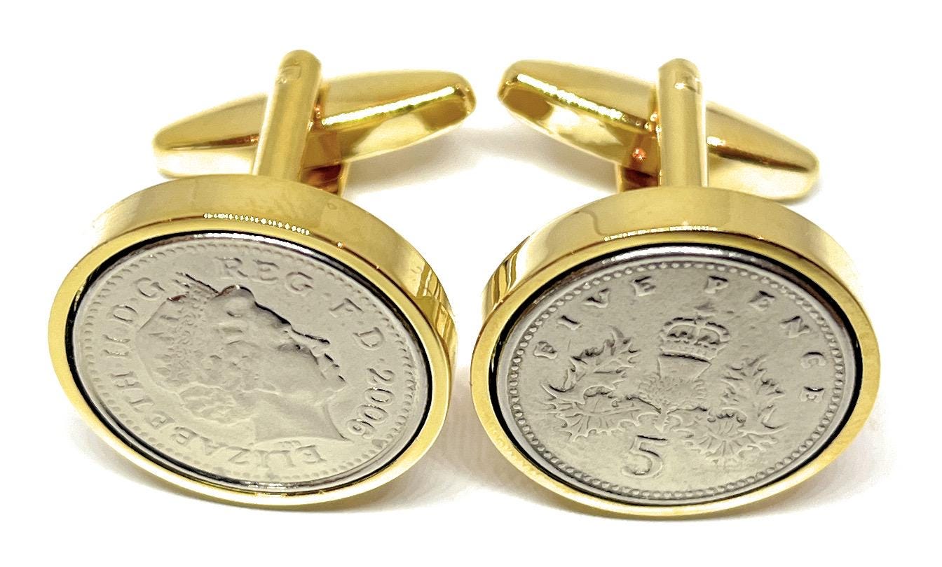 2006 five pence coin cufflinks 19th Birthday Gift Wedding Anniversary: Silver or Gold Plated backs