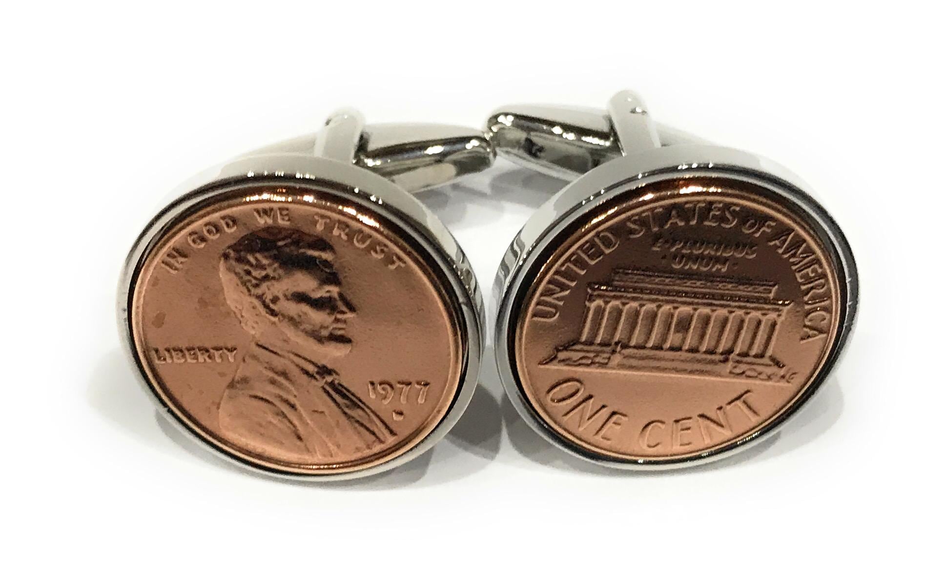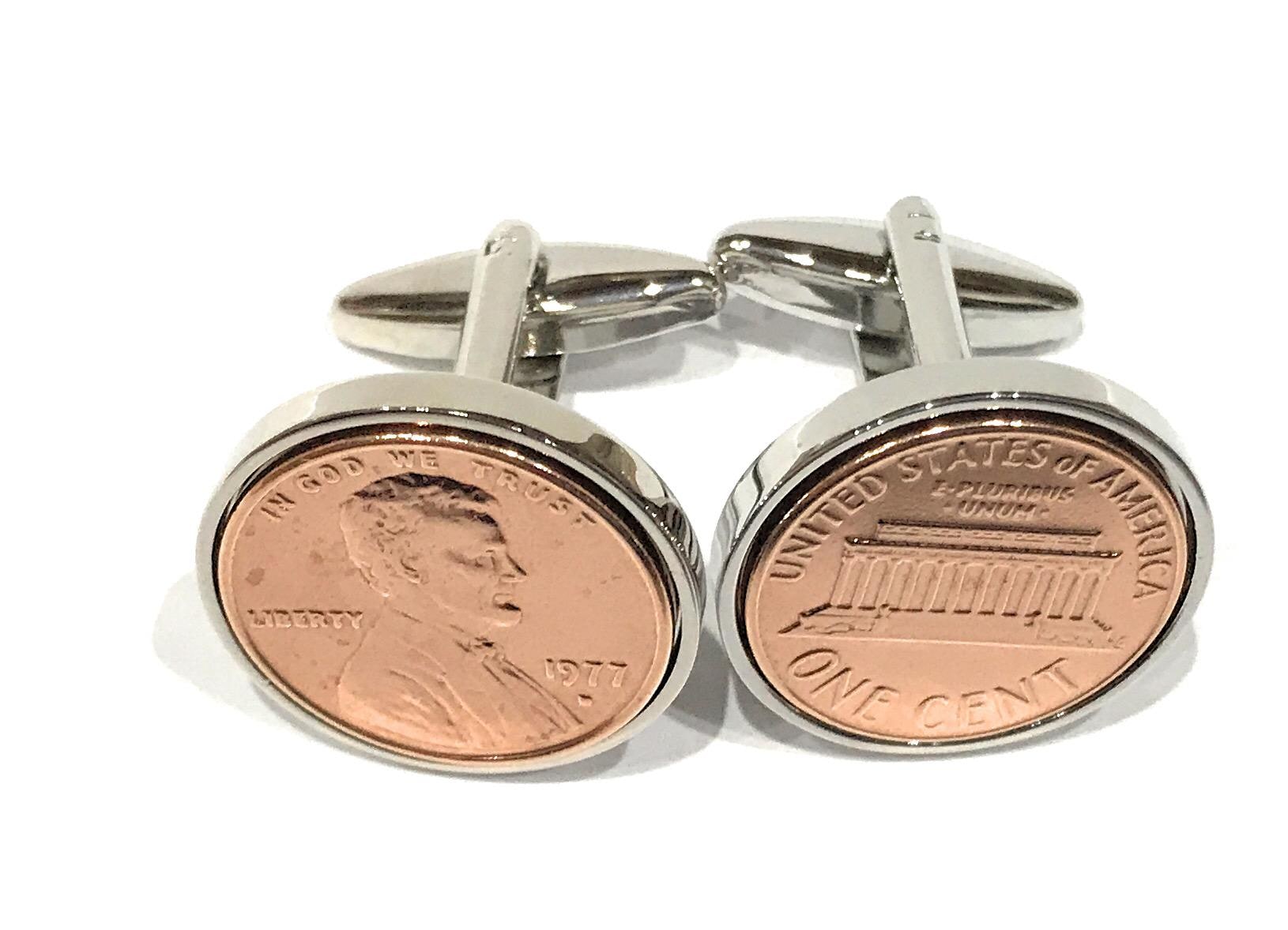 1977 1 cent Lincoln coin cufflinks 48th Birthday Gift: Silver Plated Backs