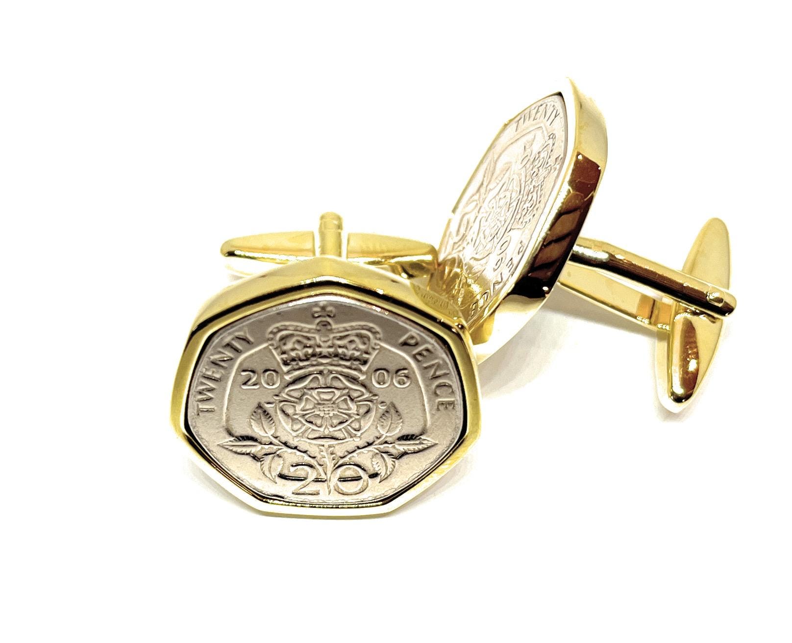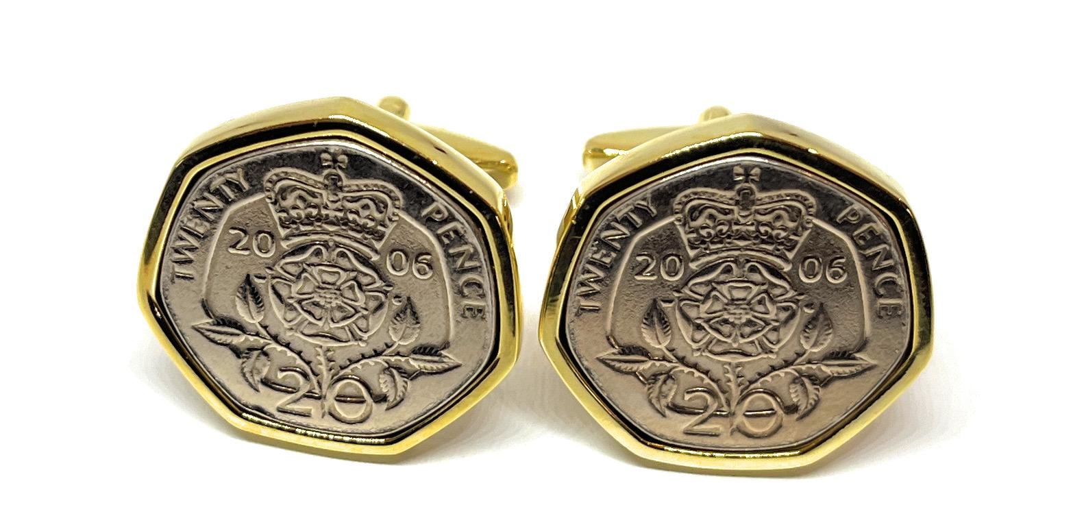 2006 Twenty Pence coin cufflinks 20th Birthday Gift Anniversary : Silver or Gold plated backs