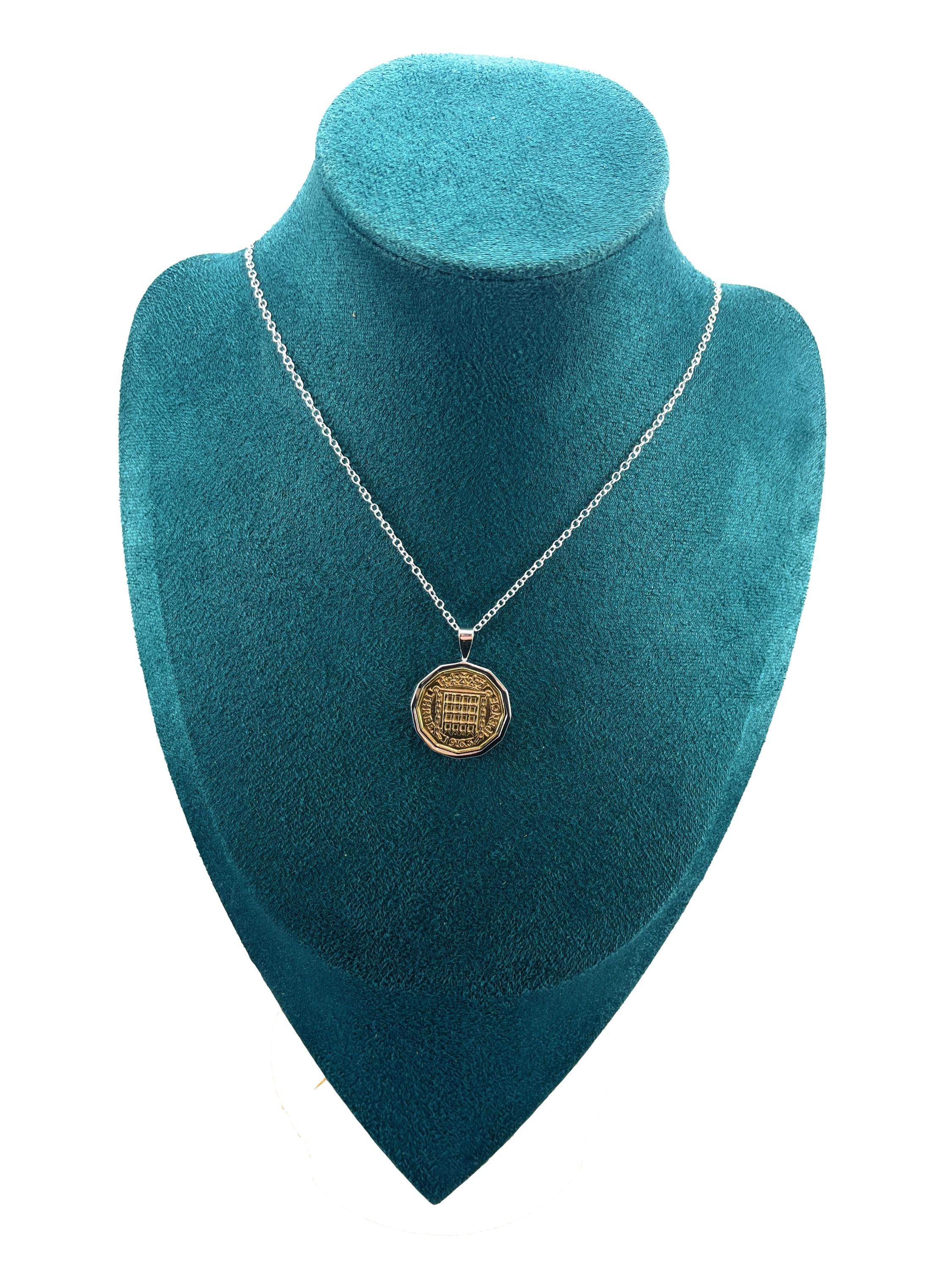 Genuine Circulated Threepence Mounted on a Silver or Gold Plated mount with a Sterling silver chain 1956 coin