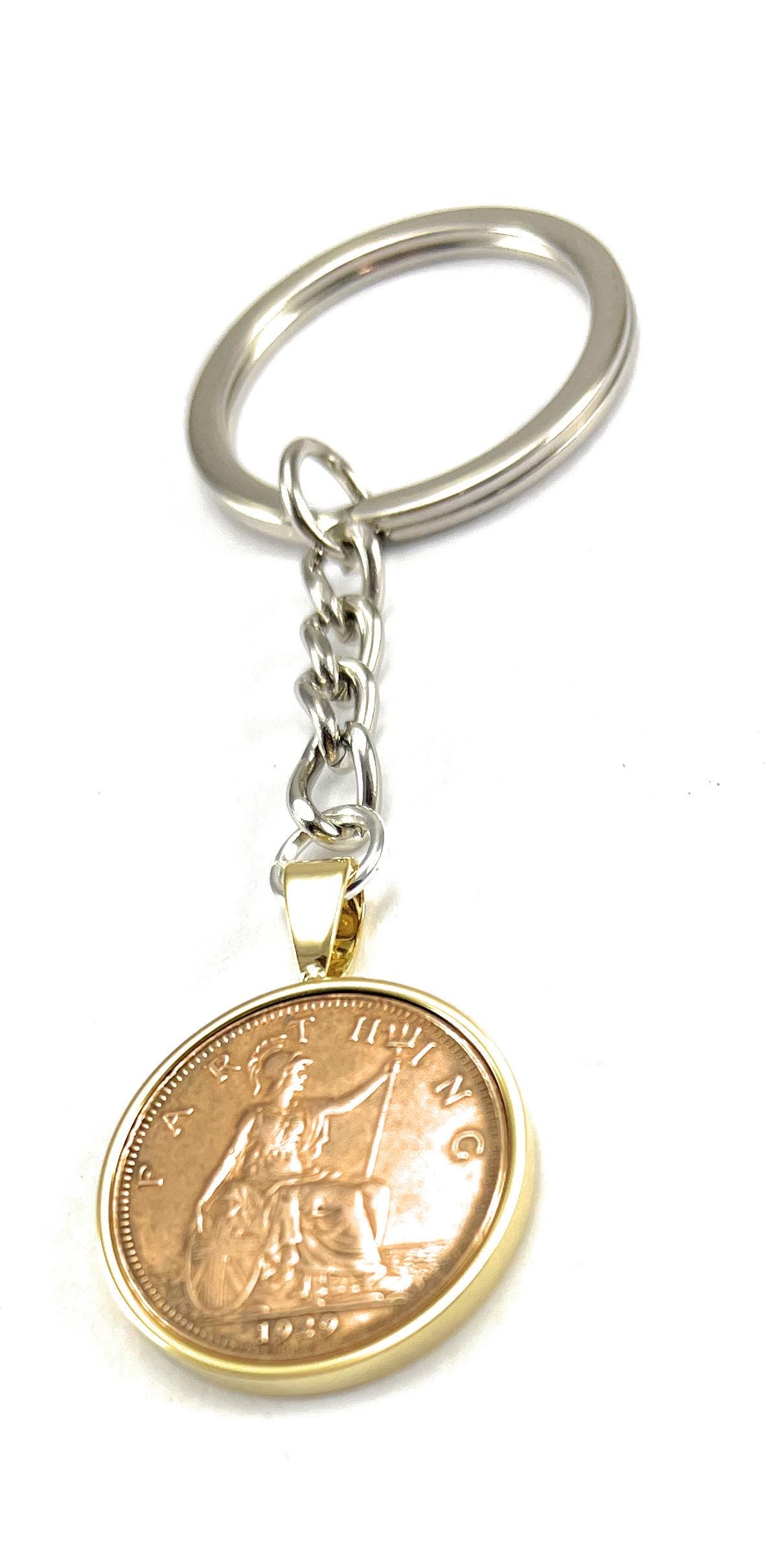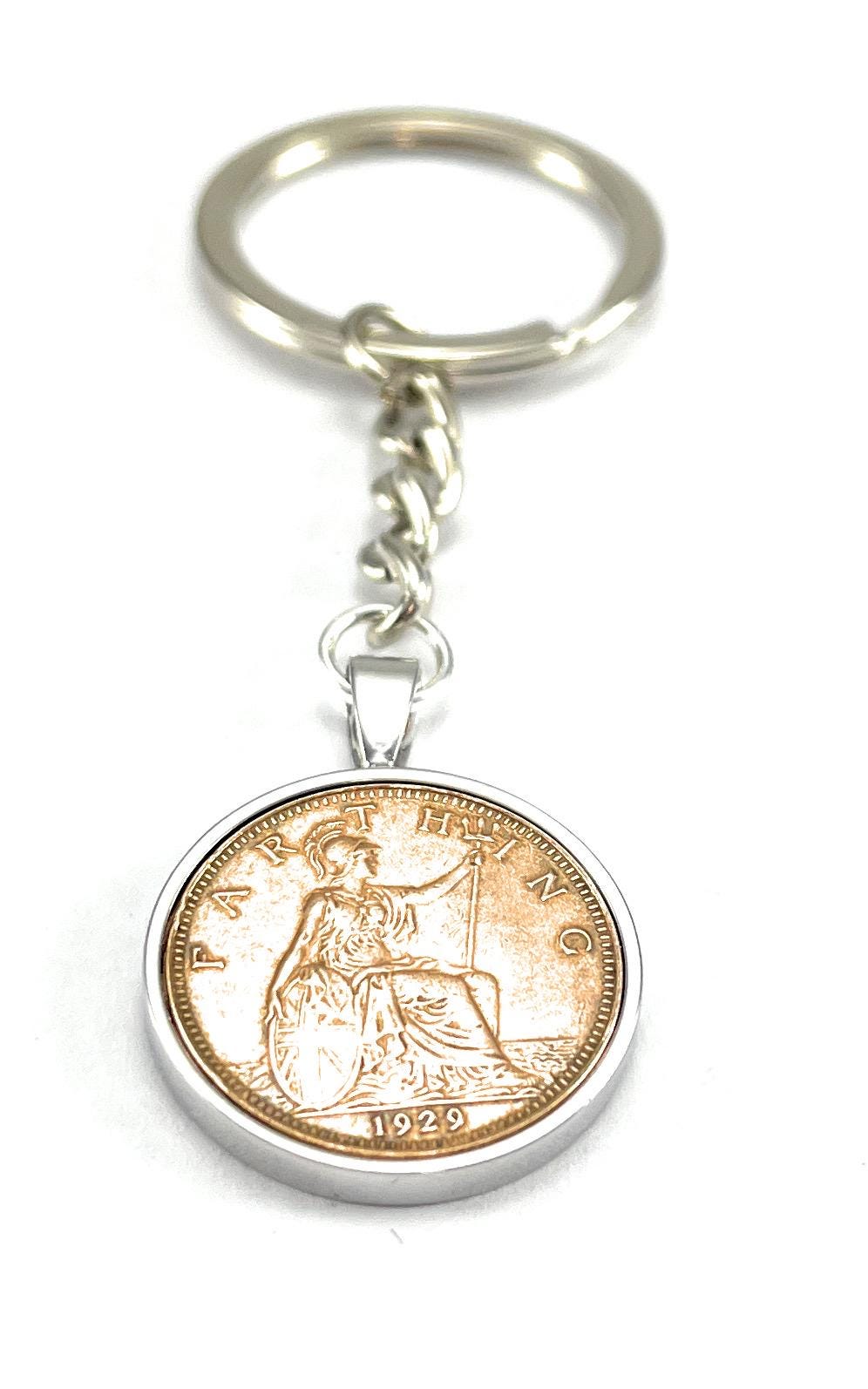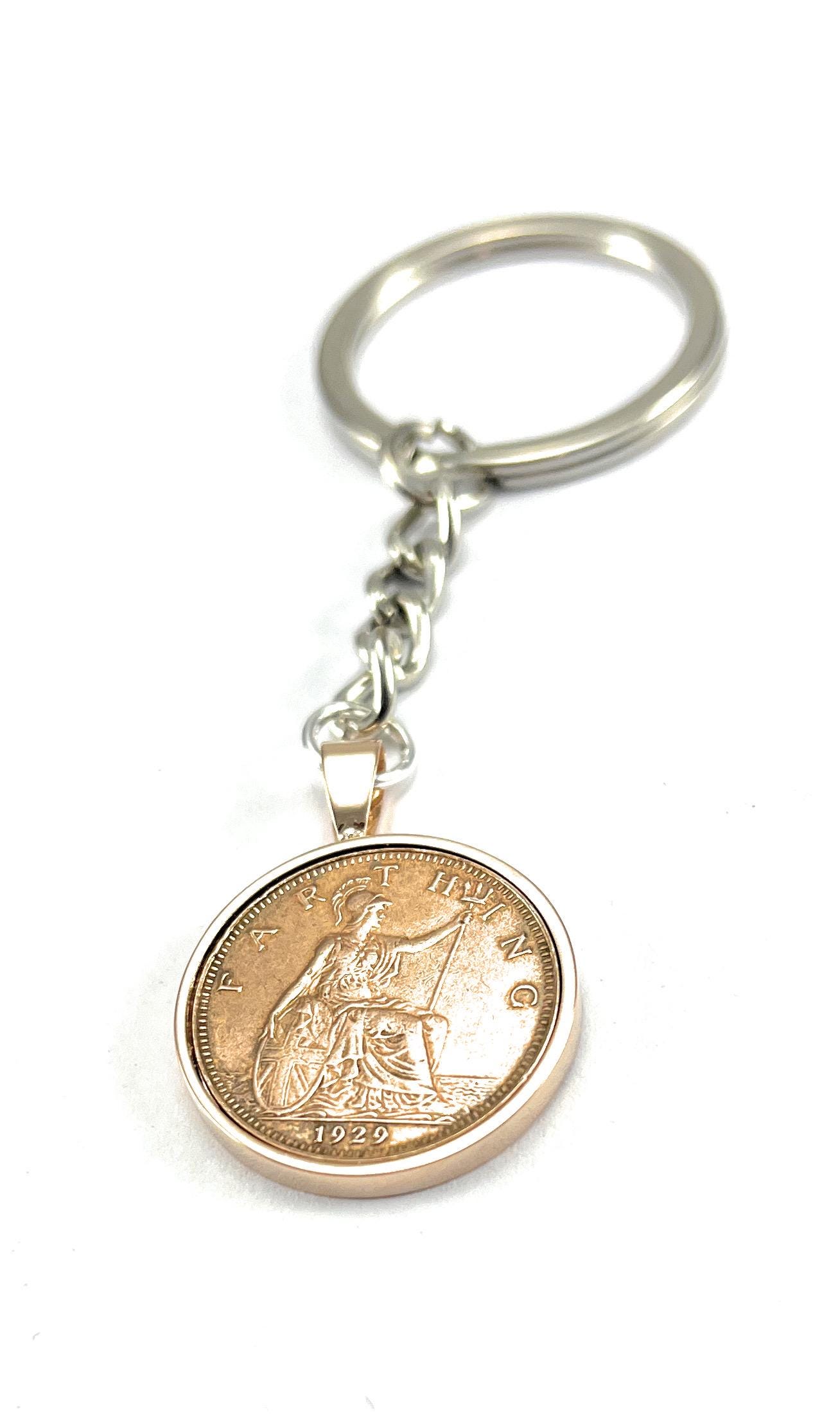 1929 Farthing Keyring: 95th Birthday Gift, Silver, Gold or RoseGold Plated backs