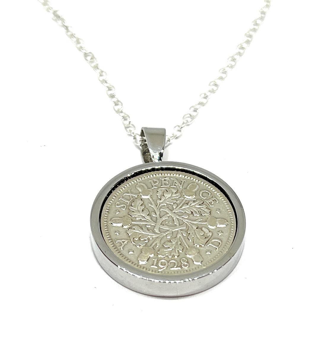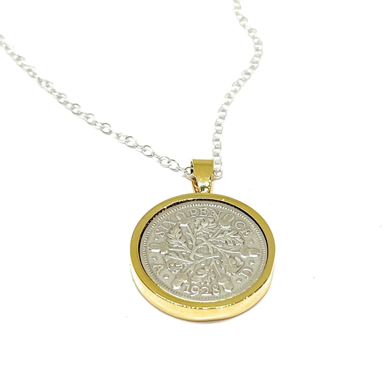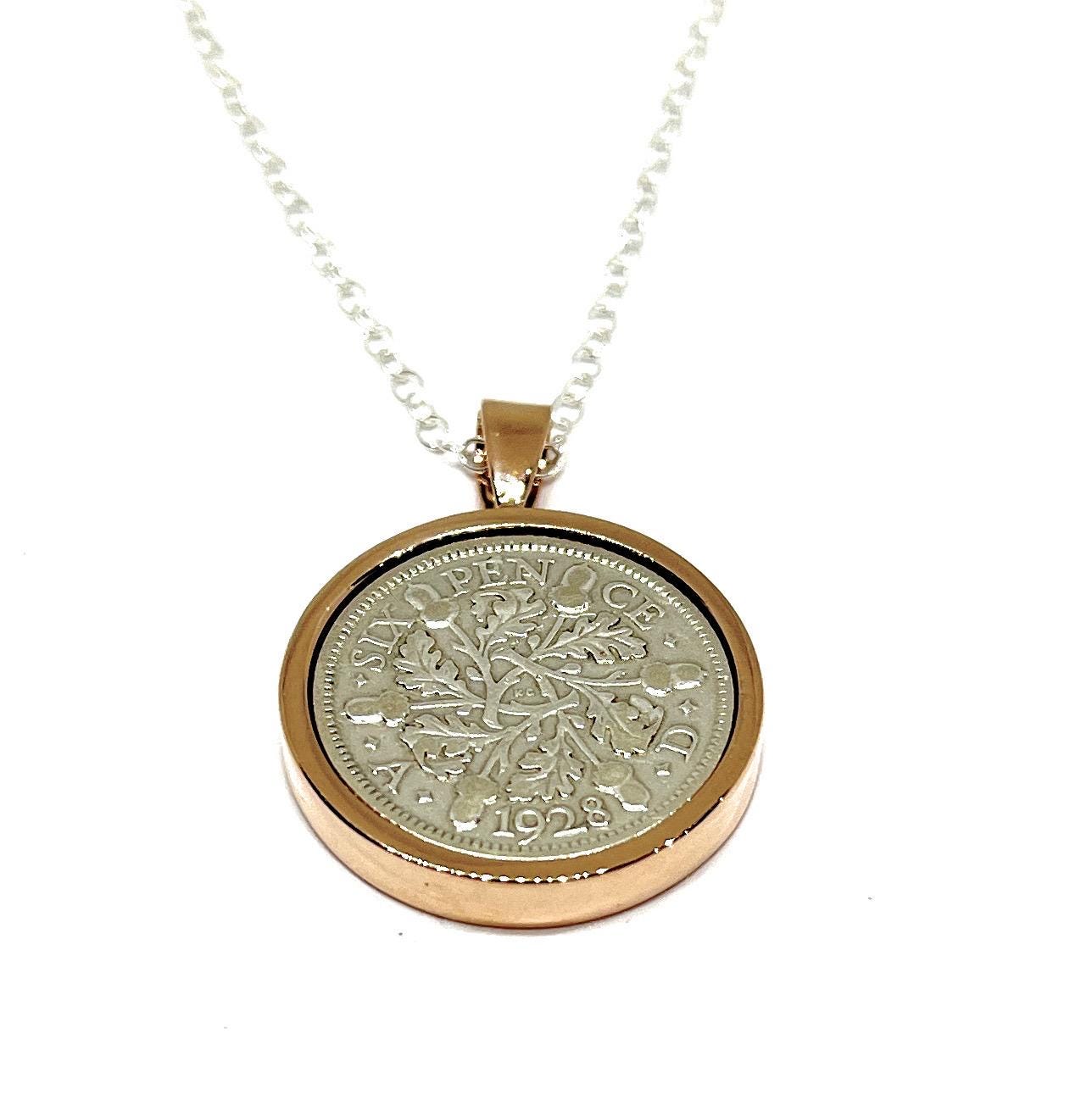 1928 97th Birthday gift Anniversary sixpence coin pendant: Silver, Gold or Rose Gold Plated