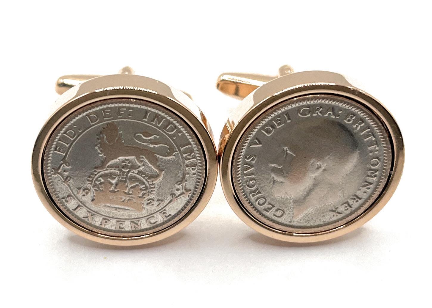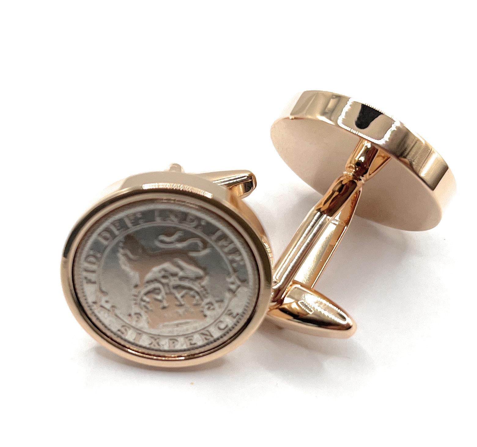 Genuine Circulated Sixpence Mounted on a Silver, Gold or Rose Gold Plated mount
