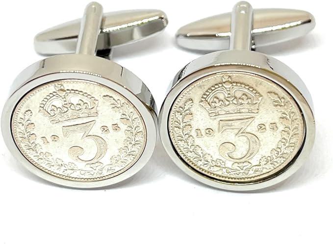 1925 Silver Threepence Coin Cufflinks: 99th Birthday Gift, Silver Plated backs