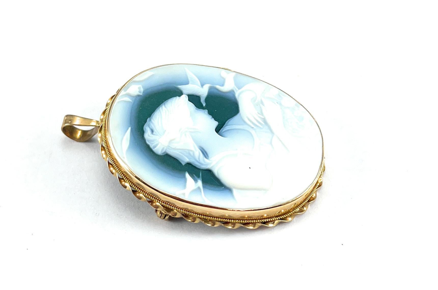 Antique 9ct Gold Carved Cameo Pendant / Brooch 3.8cm Long X 2.8cm (36)