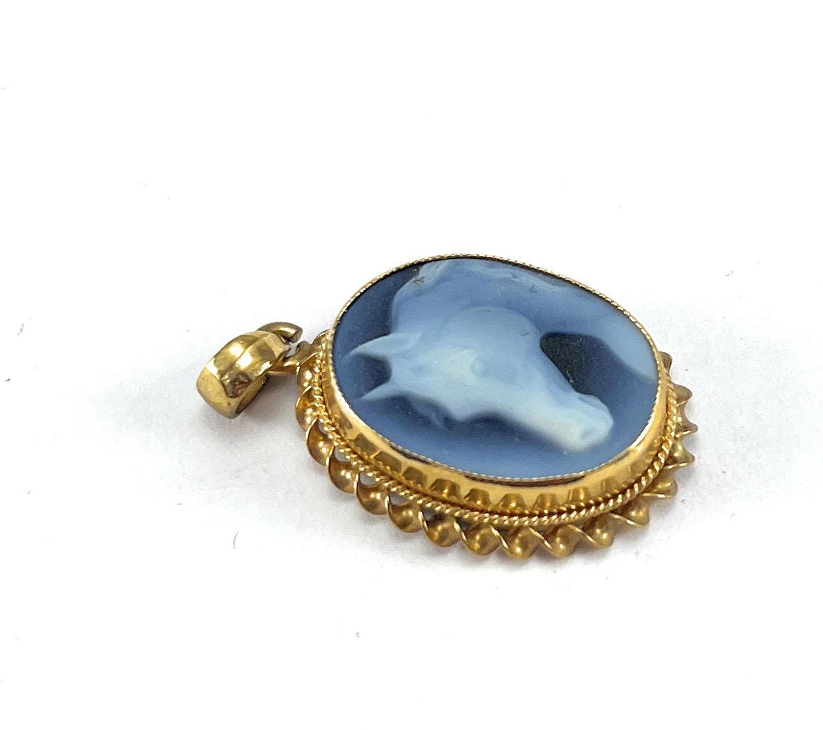Antique 9CT Gold Carved Agate Cameo Pendant 2.0 cm X 1.5 cm (7)