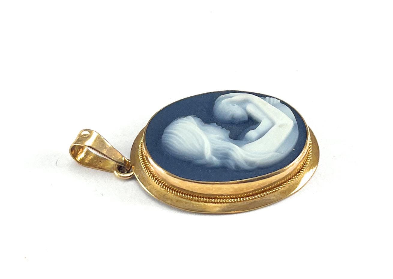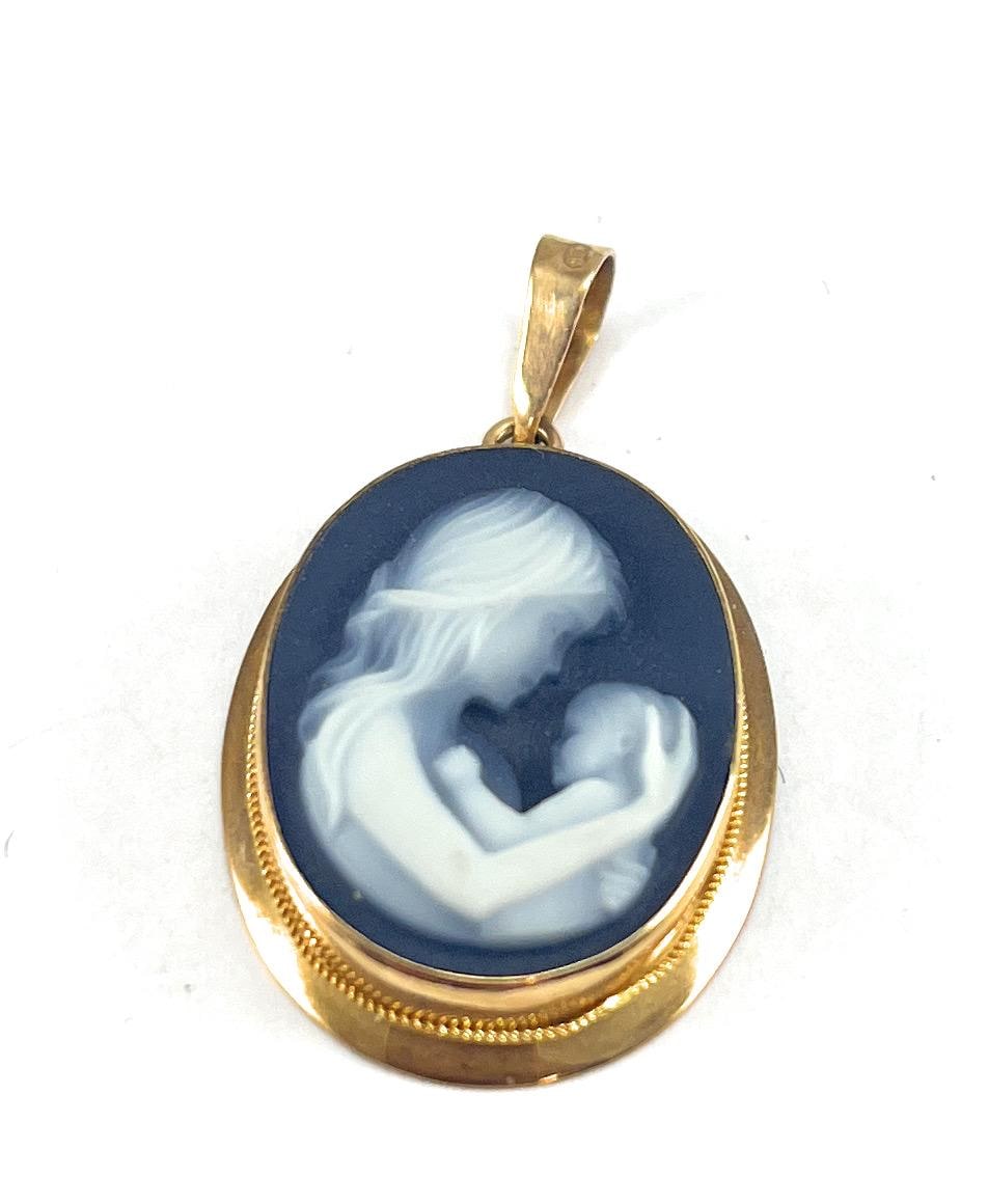 Antique 9CT Gold Carved Agate Cameo Pendant 2.3 cm X 1.7 cm (8)
