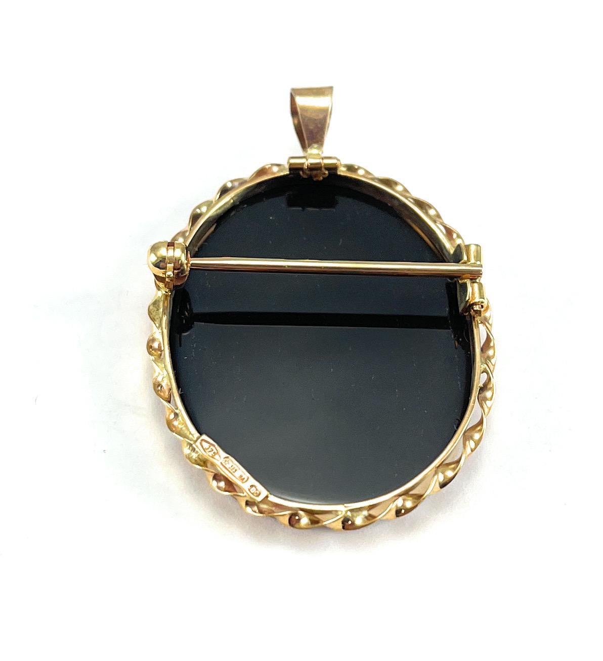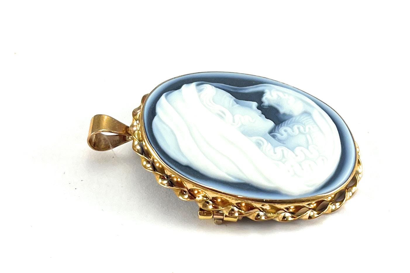 Antique 9ct Gold Carved Agate Cameo Pendant / Brooch 3.7cm X 3.0 cm (27)