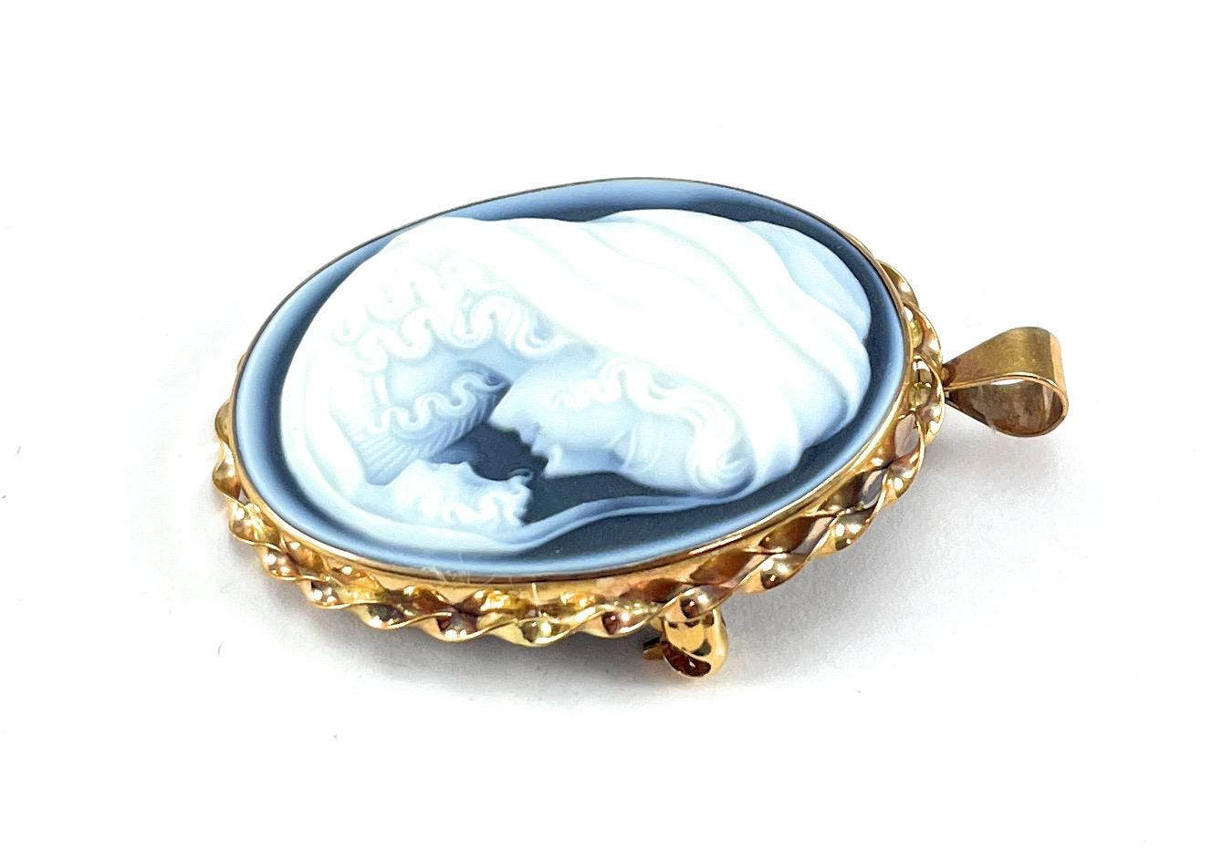 With its classic design and hallmarked craftsmanship, this Cameo Pendant / brooch exudes elegance and timeless charm, perfect for adding a touch of vintage sophistication to any outfit.