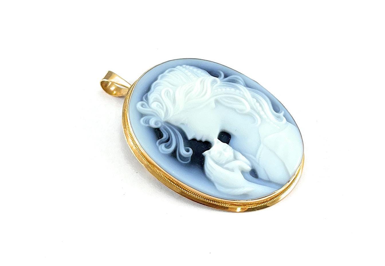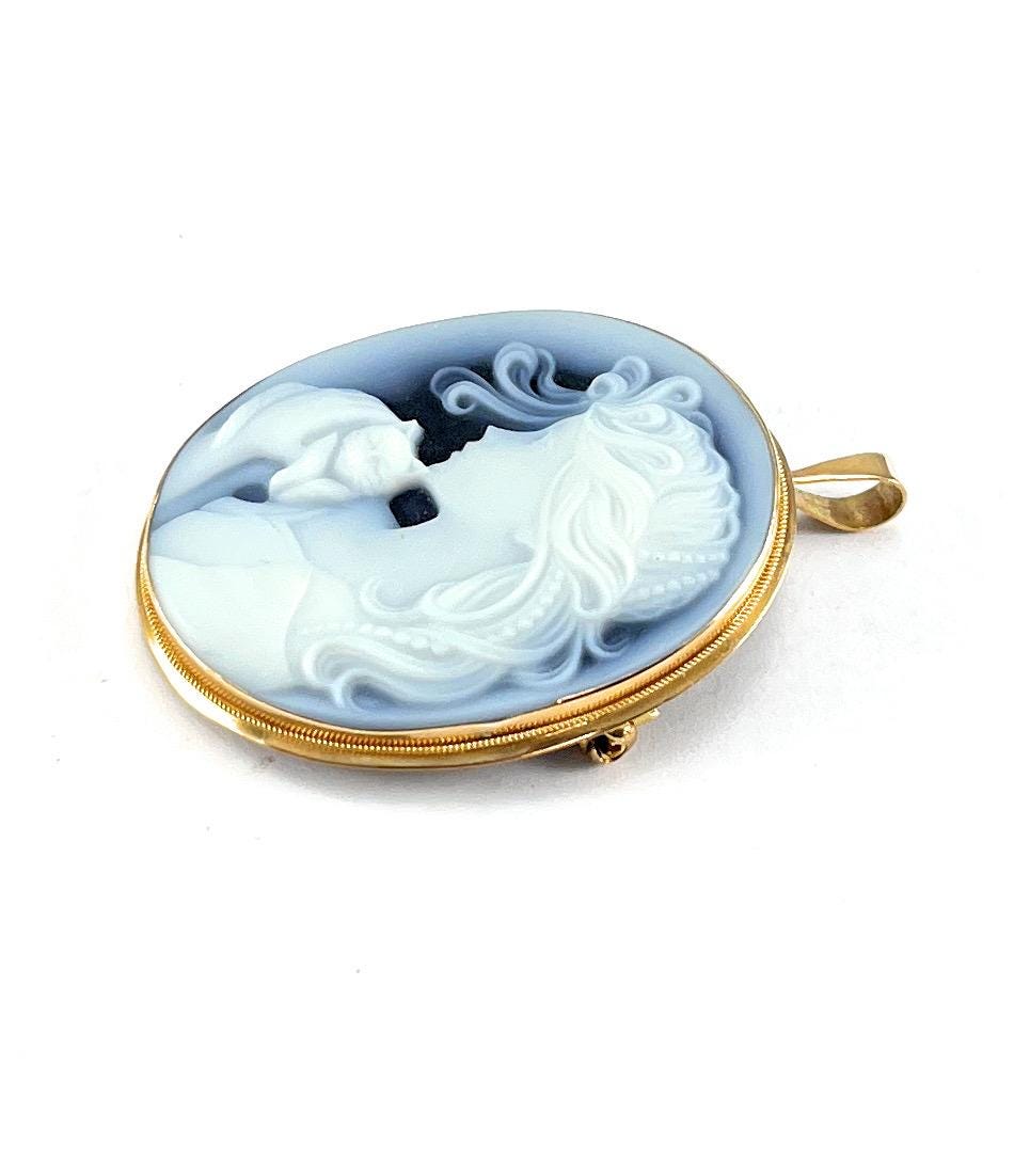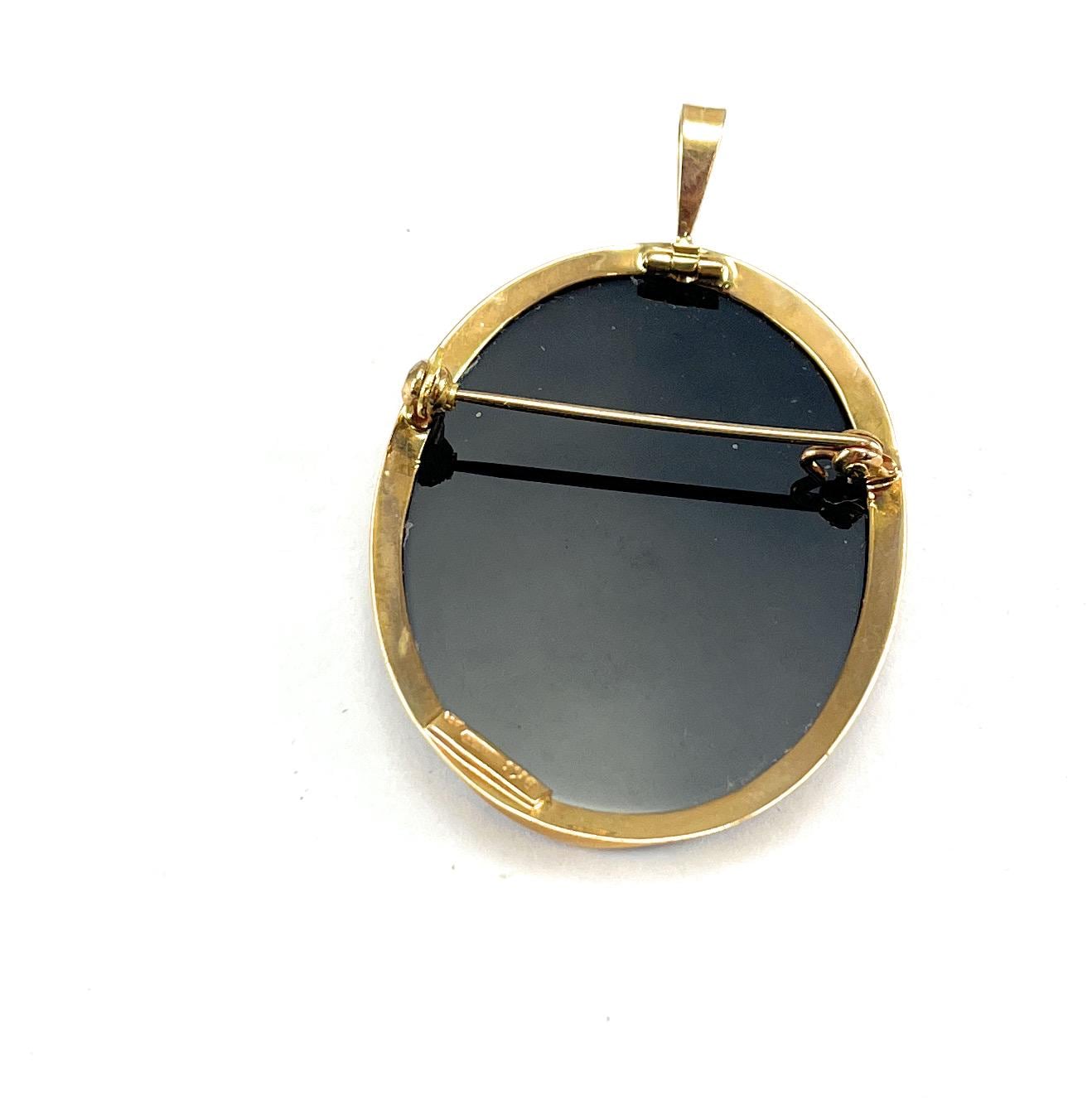 Antique 9ct Gold Carved Agate Cameo Pendant / Brooch 3.7cm X 2.8 cm (26)