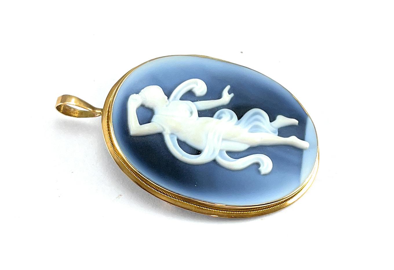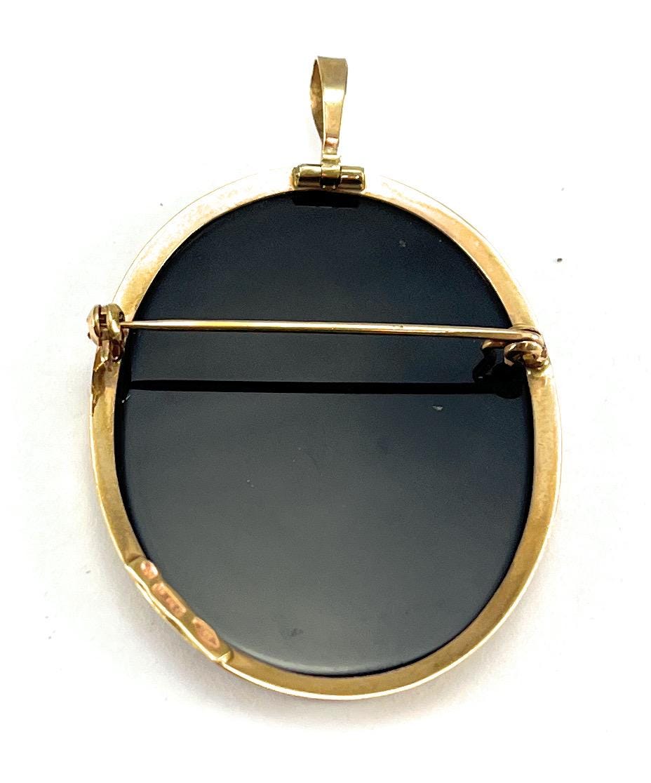 Antique 9ct Gold Carved Agate Cameo Pendant / Brooch 4.2 cm X 3.2 cm (40)