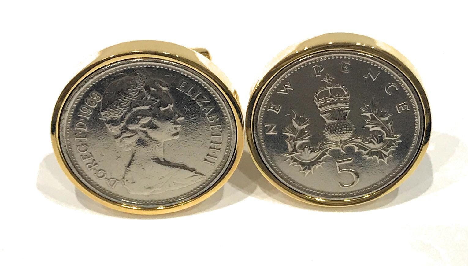1968 Old English 5p coin cufflinks- 23mm Silver or Gold Plated