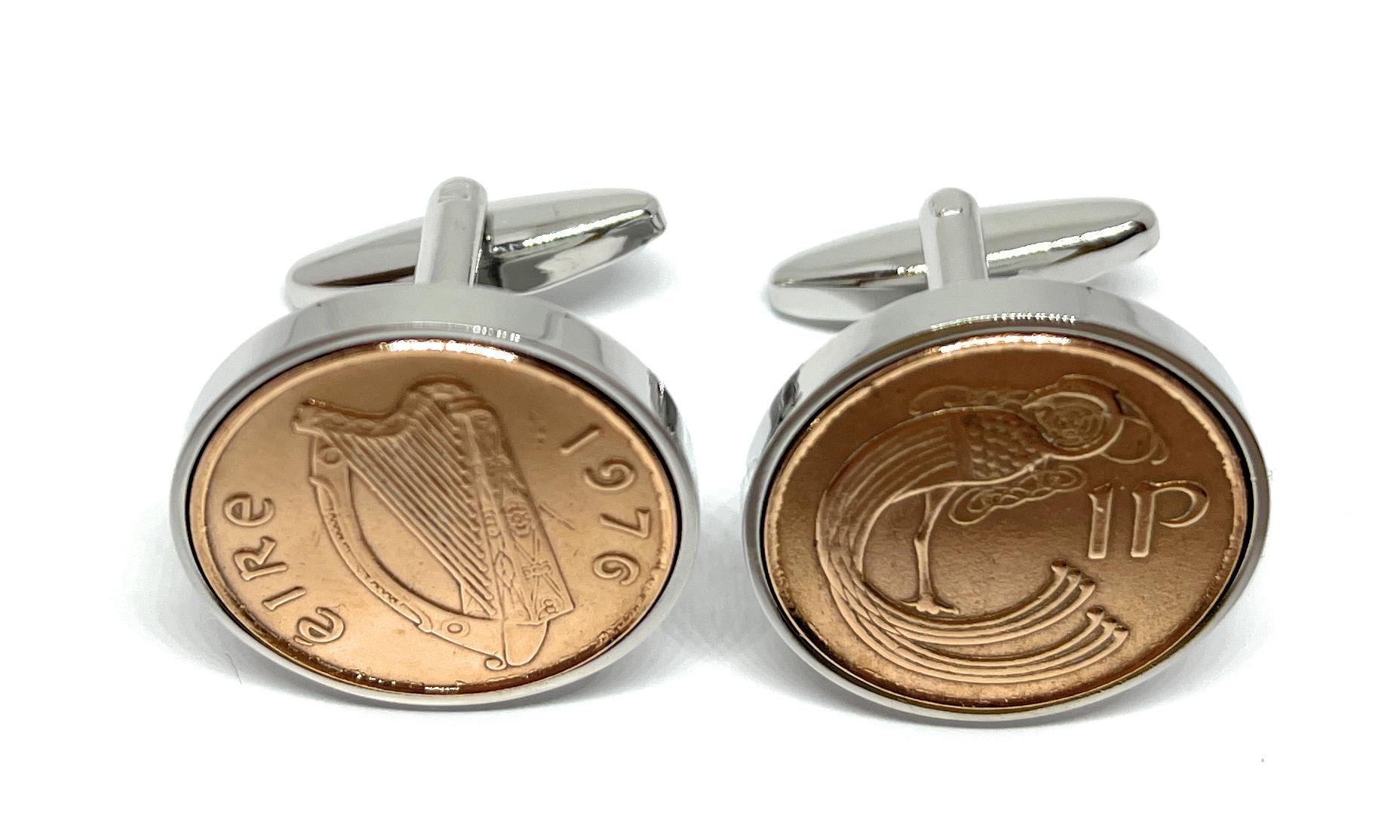 1976 49th Birthday gift Irish Penny for Luck coin cufflinks: Silver Plated backs