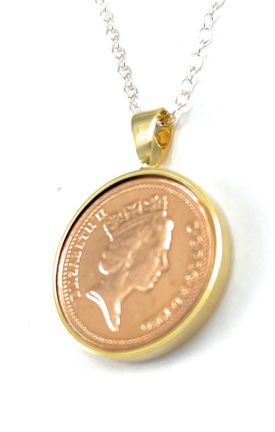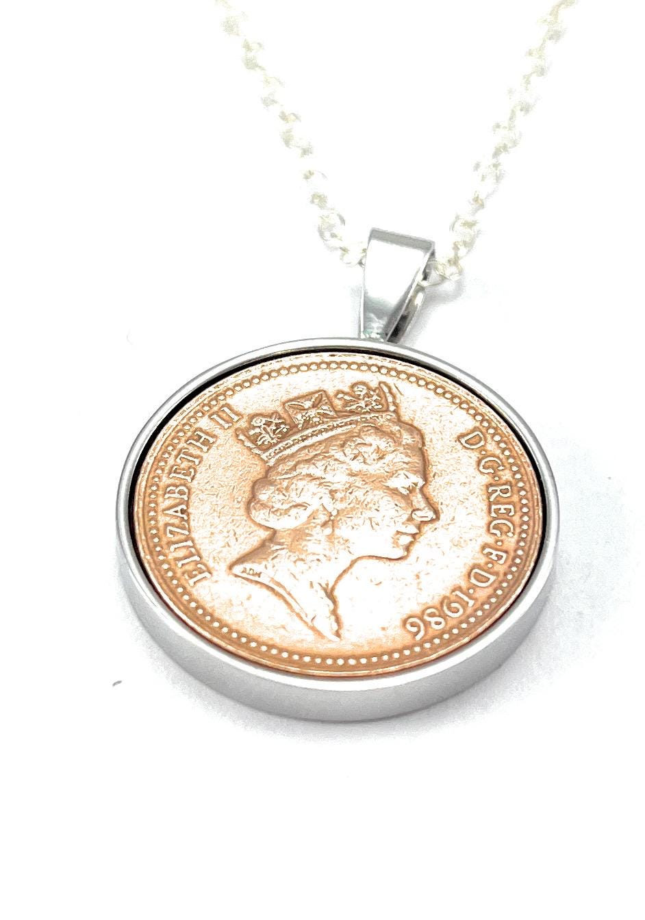 This 1986 One Pence Coin Pendant are a unique and timeless gift, perfect for celebrating a 39th birthday. Featuring the distinctive design of a British one penny from the year of birth, this Pendant offer a meaningful connection to the past while adding a sophisticated touch to any outfit.