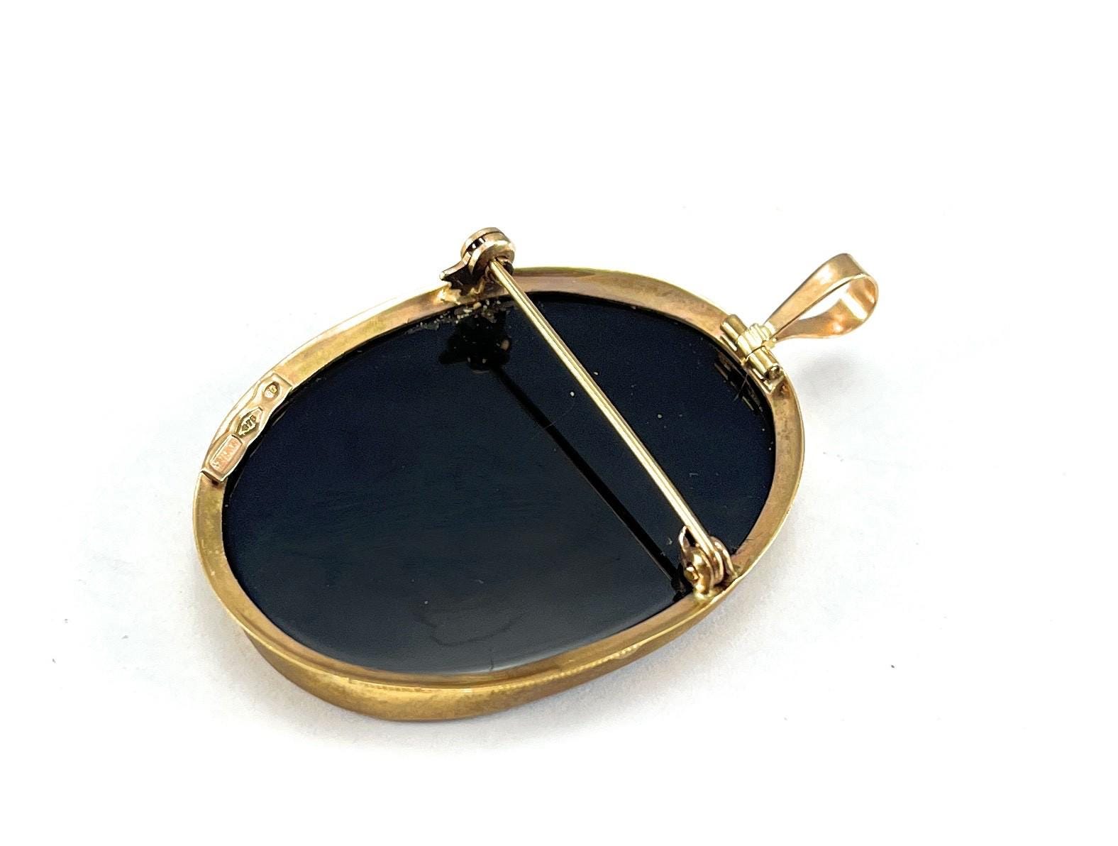 Antique 9CT Gold Carved Cameo Pendant / Brooch 3.8 cm Long X 3 cm (30)