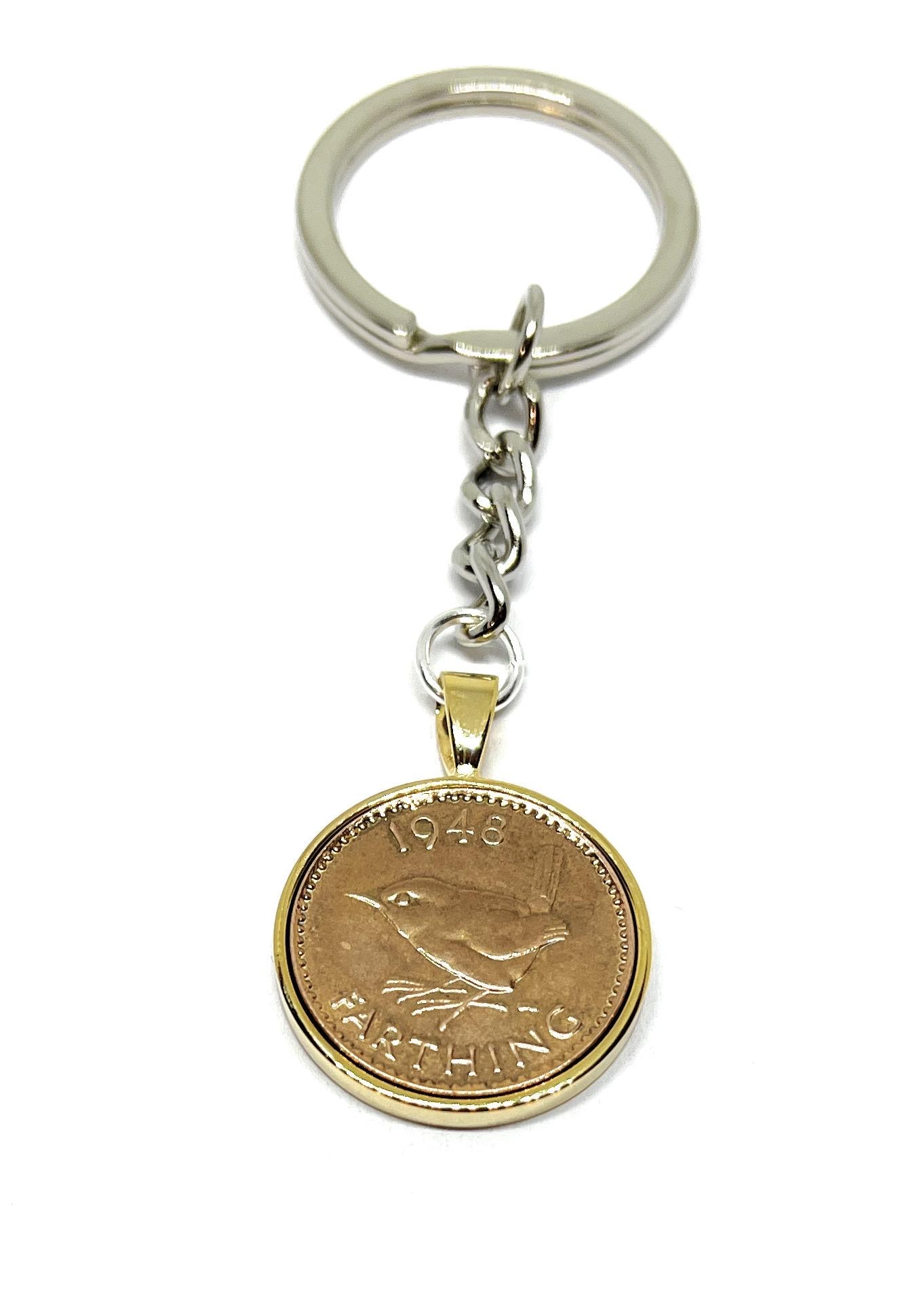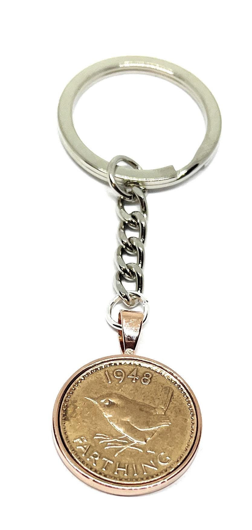 1947 78th Birthday Gift Farthing Keyring Mum, Dad: Silver, Gold or RoseGold Plated mounts