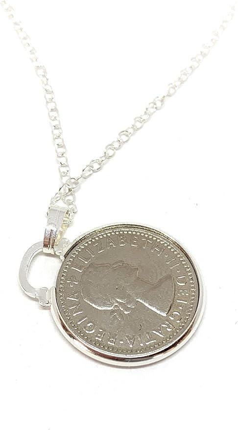 1956 Sixpence Coin Pendant 69th Birthday Gift: Sterling Silver Chain
