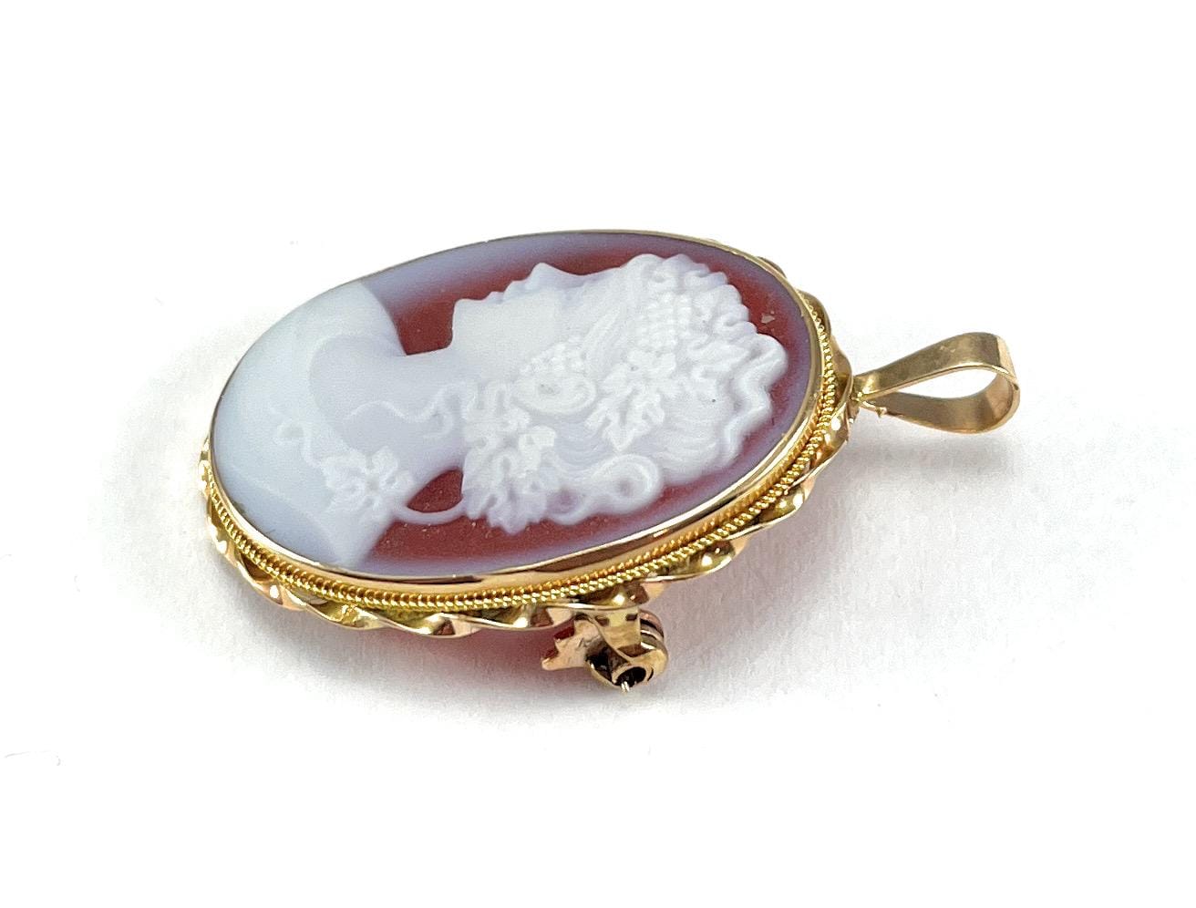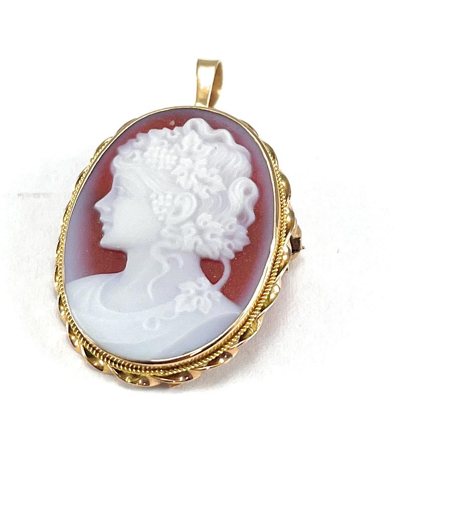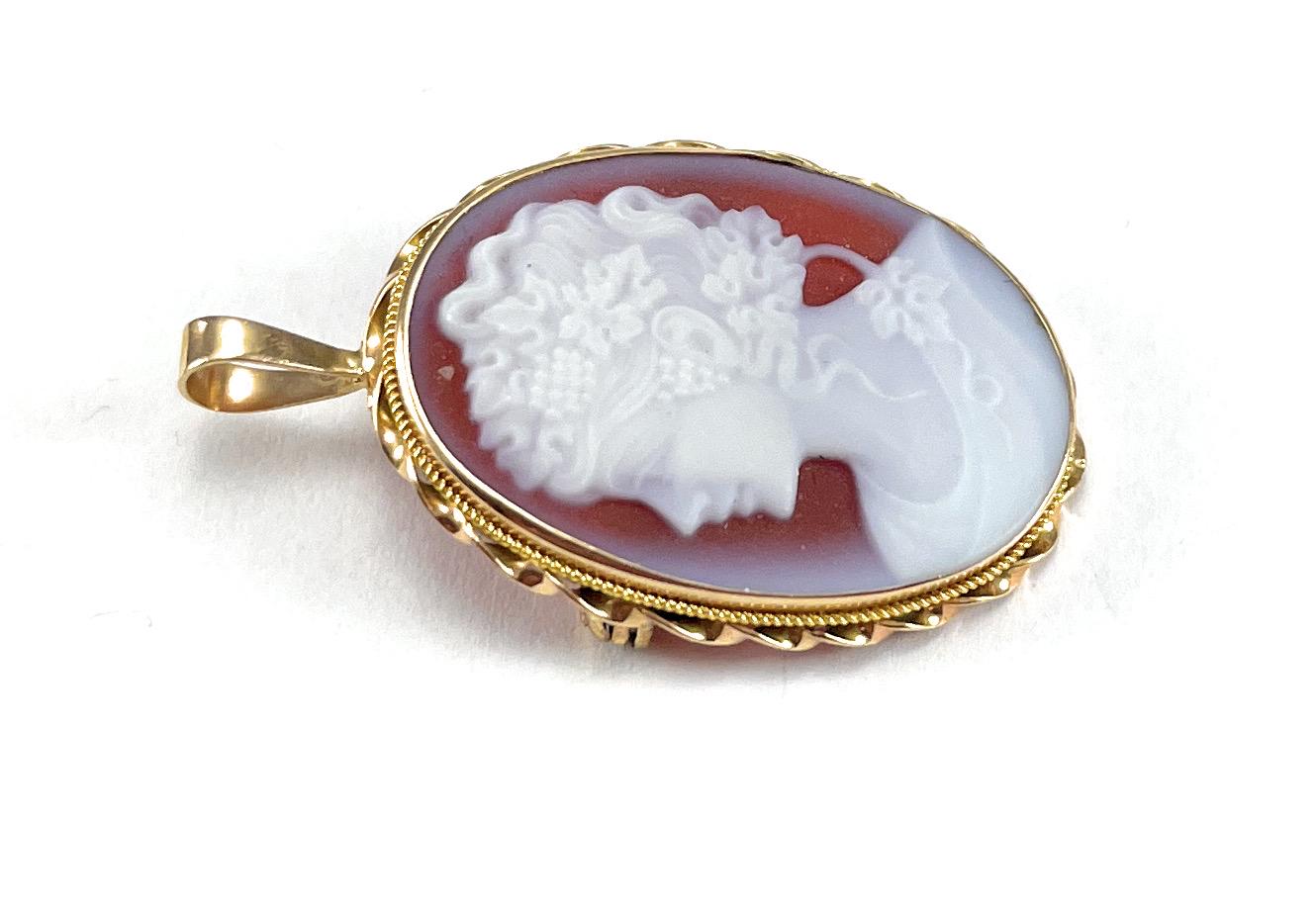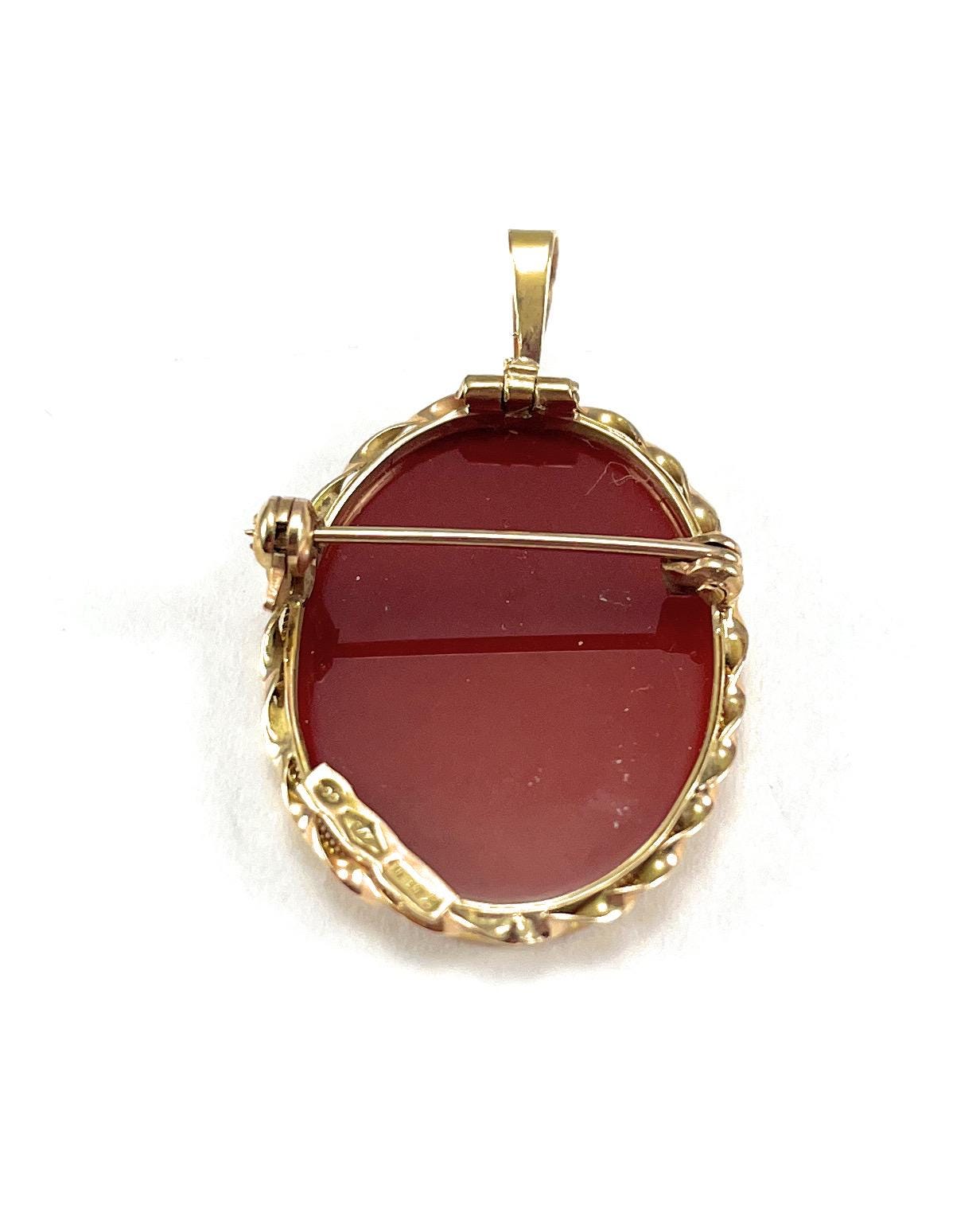 Antique 9ct Gold Carved Agate Cameo Pendant / Brooch – Victorian Girl – 2.5cm x 2.0cm (2)