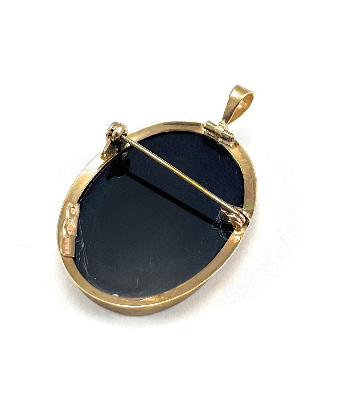 Antique 9ct Gold Carved Agate Cameo Pendant / Brooch – Victorian Girl – 3.0cm x 2.5cm (21)