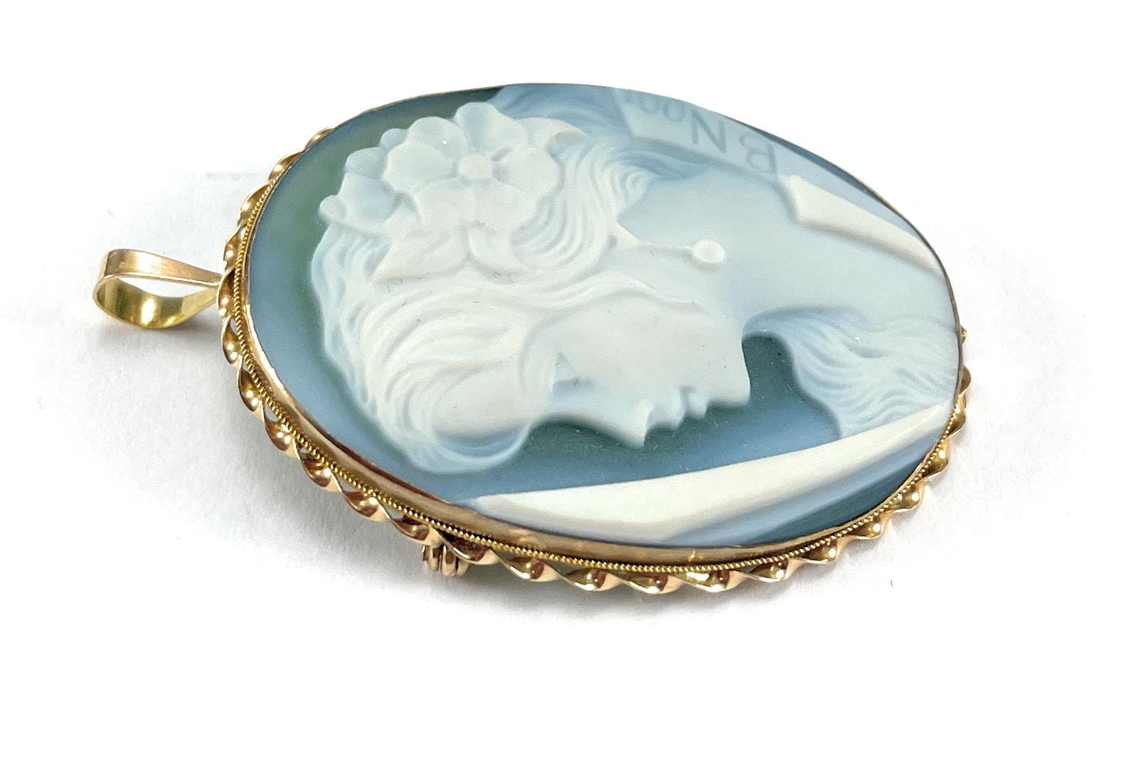 Antique 9ct Gold Carved Agate Cameo Pendant / Brooch 4.0cm X 3.2 (37) Victorian Lady