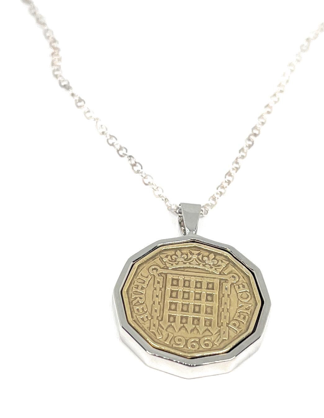 Add a touch of nostalgia and heritage with this beautifully handcrafted 1966 British Threepence Coin Pendant. Featuring the iconic Tudor Portcullis, this genuine vintage coin has been carefully cleaned, polished, and transformed into a stunning piece of jewellery. Perfect as a birth year gift, heritage keepsake, or a unique accessory for everyday wear.