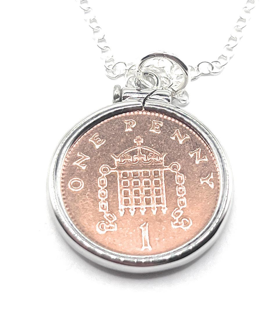 Featuring the distinctive design of a British one penny from the year of birth, these pendants offer a meaningful connection to the past while adding a sophisticated touch to any outfit. Crafted with attention to detail, the coins are polished and set in high-quality metal frames, ensuring durability and a stylish finish.