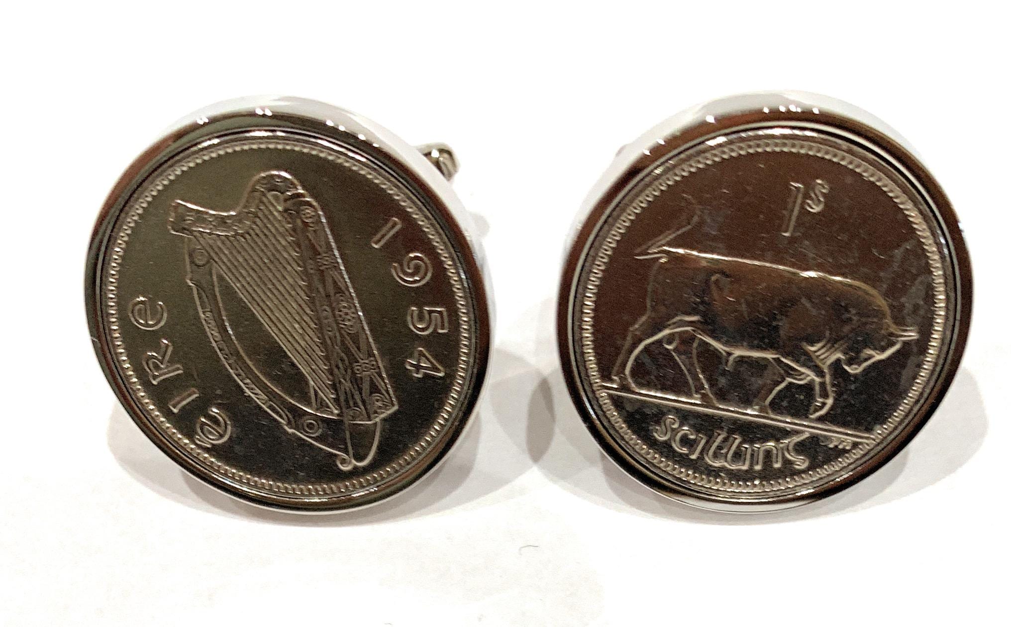 1954 Birthday Cufflinks 71st birthday gift cufflinks Irish Shilling 23mm