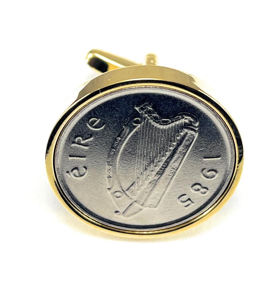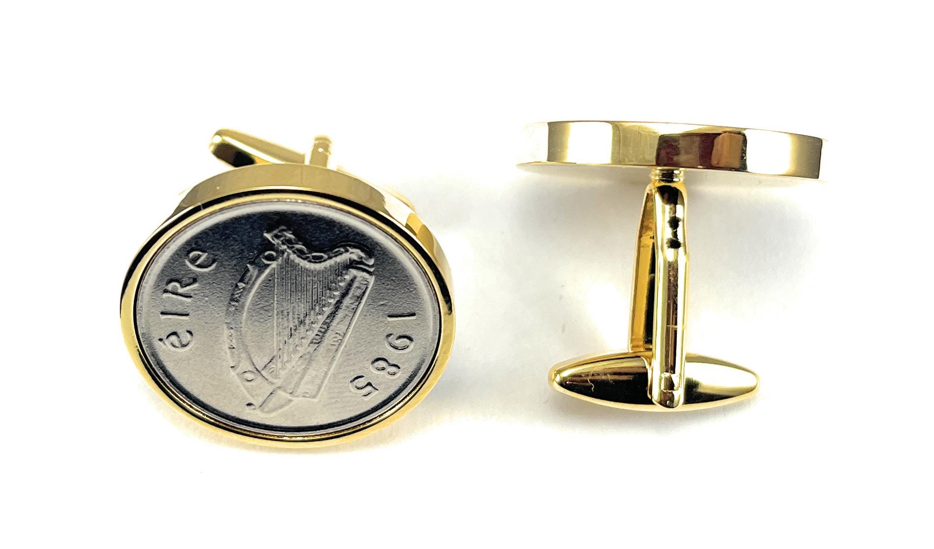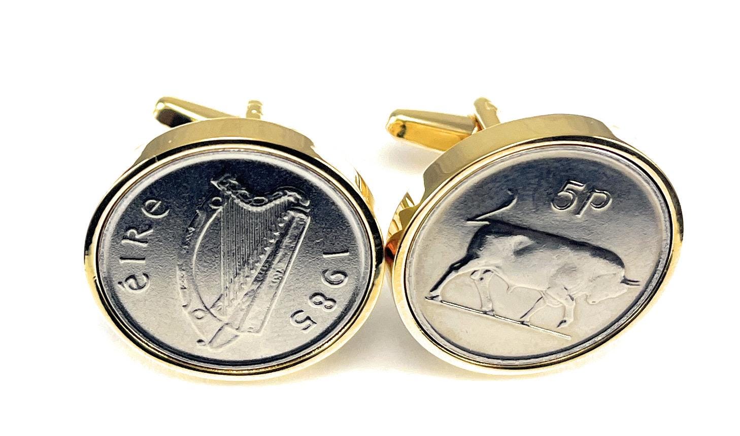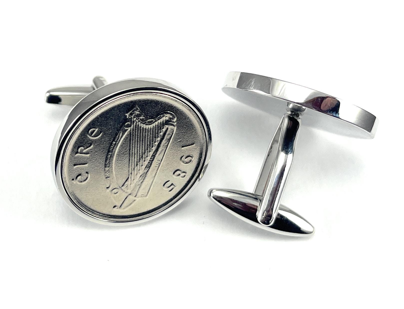 1985 40th Birthday Gift Irish Five Pence coin cufflinks 23mm: Silver or Gold Plated Mounts