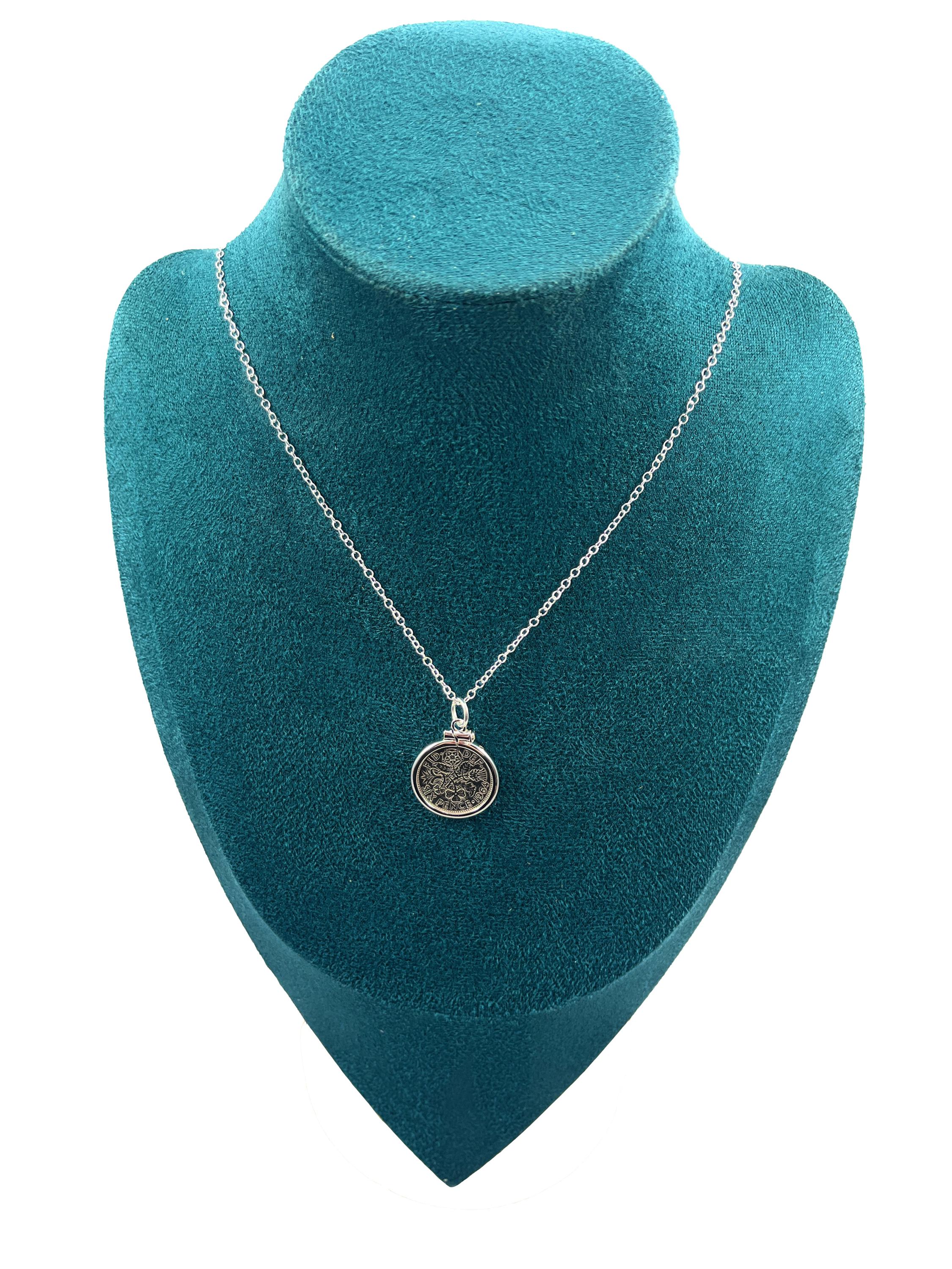 Genuine circulated 1958 67th birthday coin mounted in a Silver plated mount with Sterling Silver chain