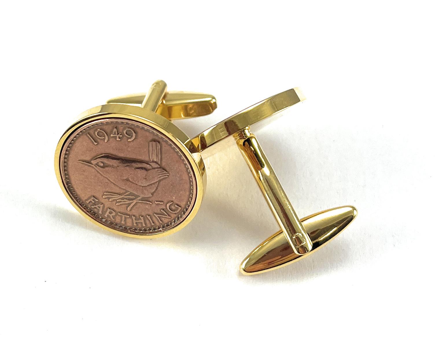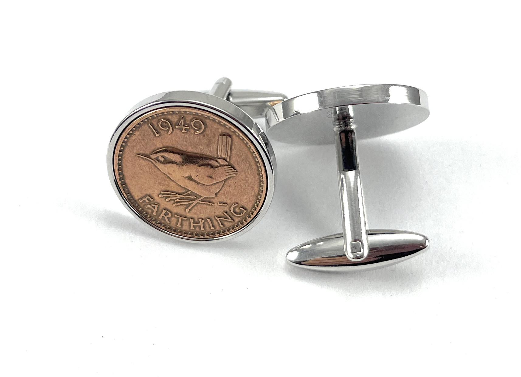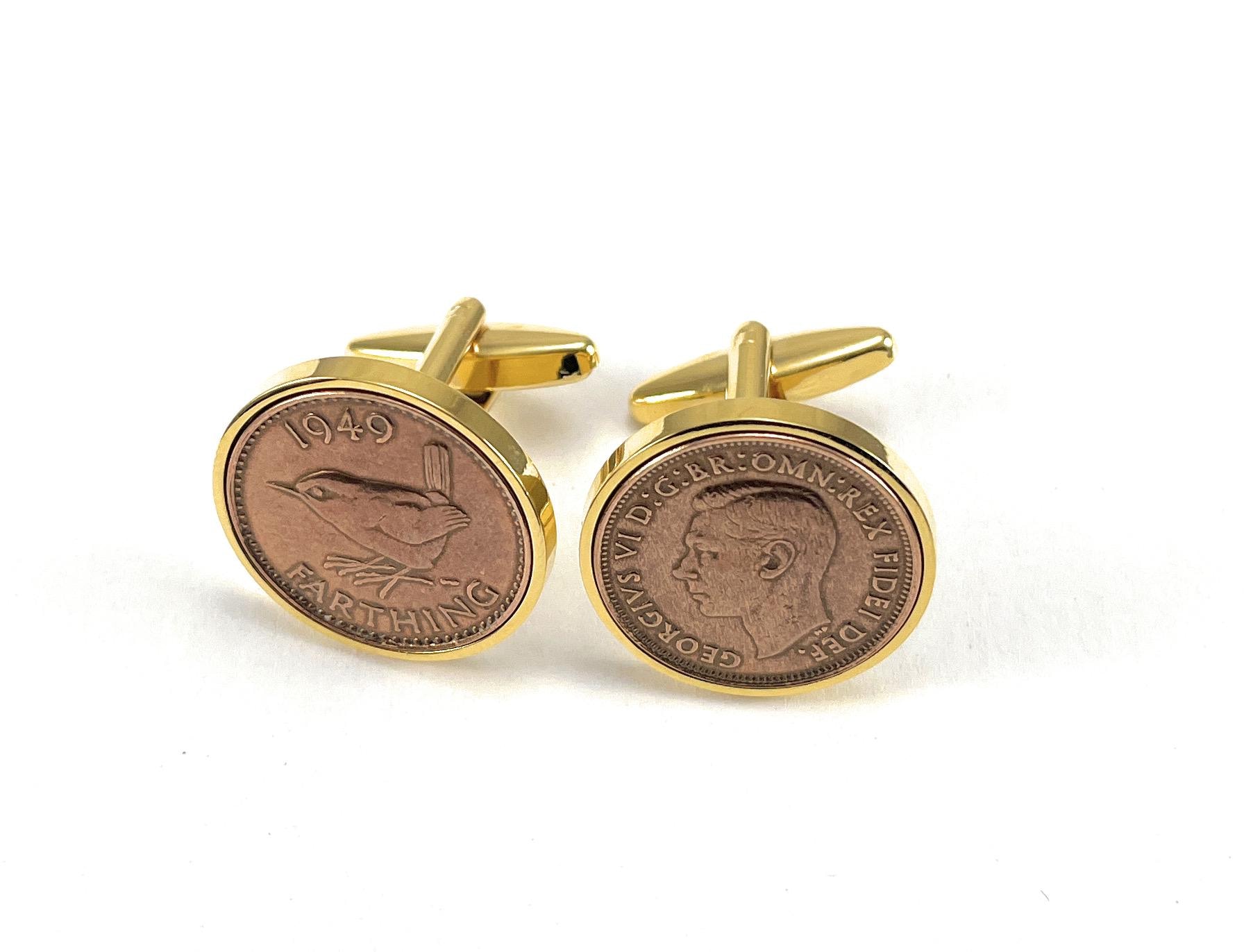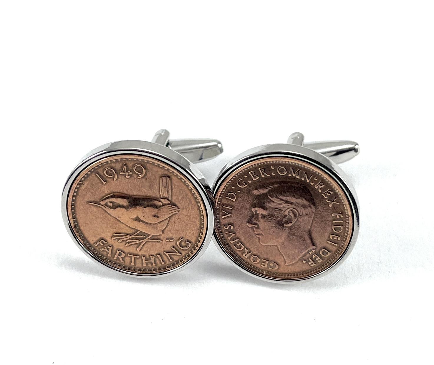 76th Birthday gift 1949 Farthing Coin Cufflinks: Silver, Gold or RoseGold Pated Mounts